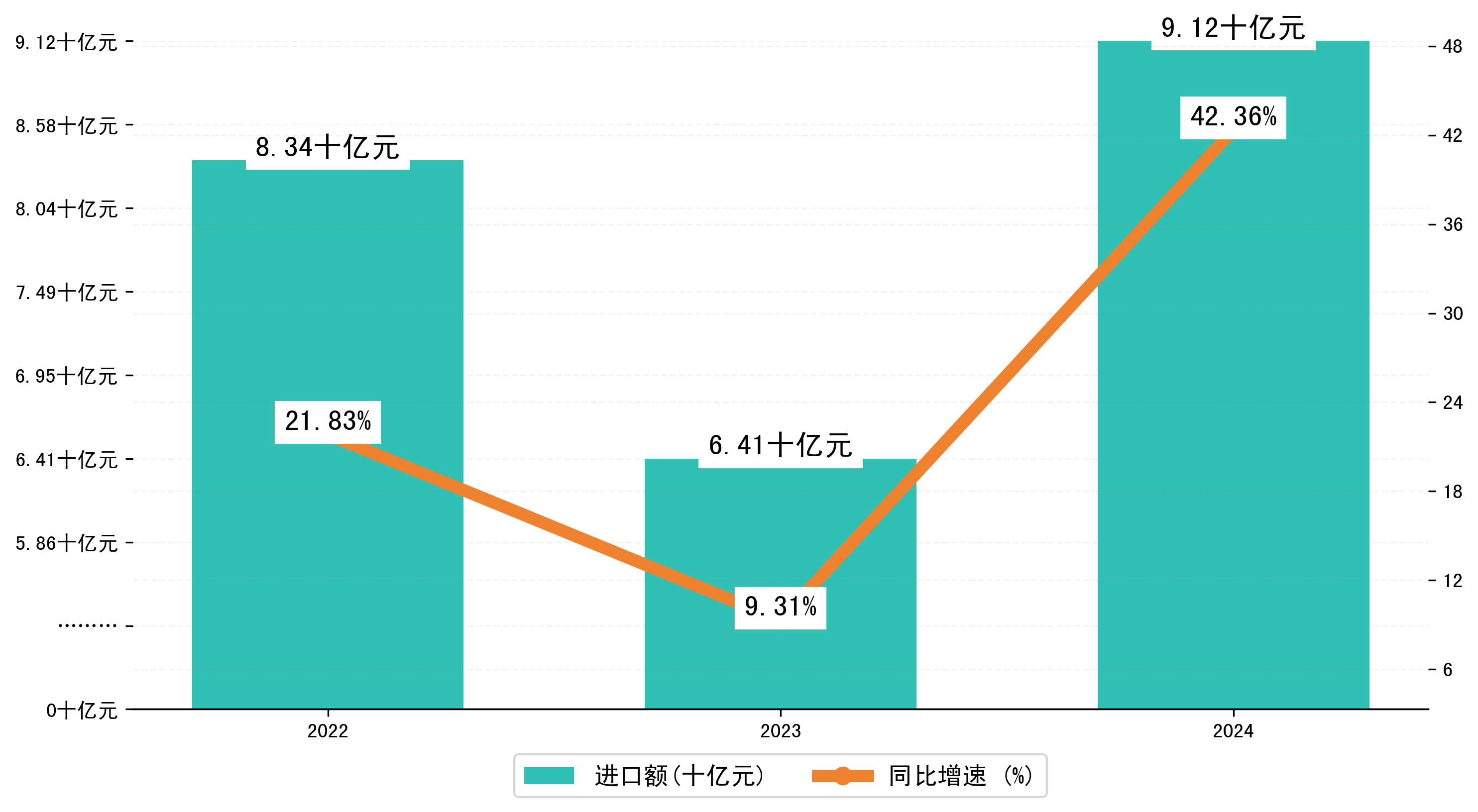 以人民币计,2024年1-11月呼和浩特市进口额为91,2066.0356万元,相比上年同期增加了27,1396.1587万元,同比增加了44.80%。