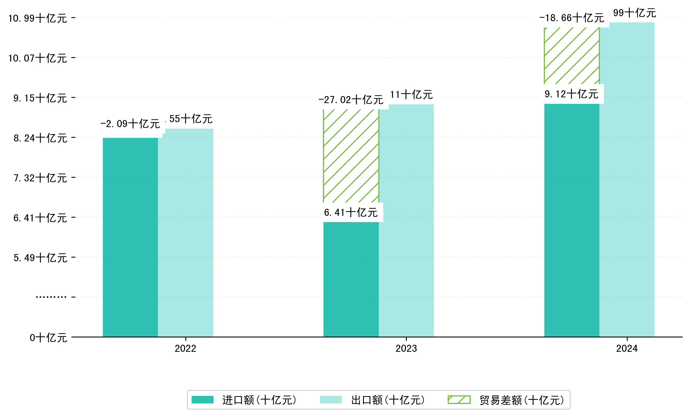 以人民币计,2024年11月呼和浩特市贸易差额为6,3180,3990万元(贸易顺差),相比上月增加了3,9287,8941万元,即5491,6314万美元;相比上年同期增加了3574,5086万元,同比增加6.0%。