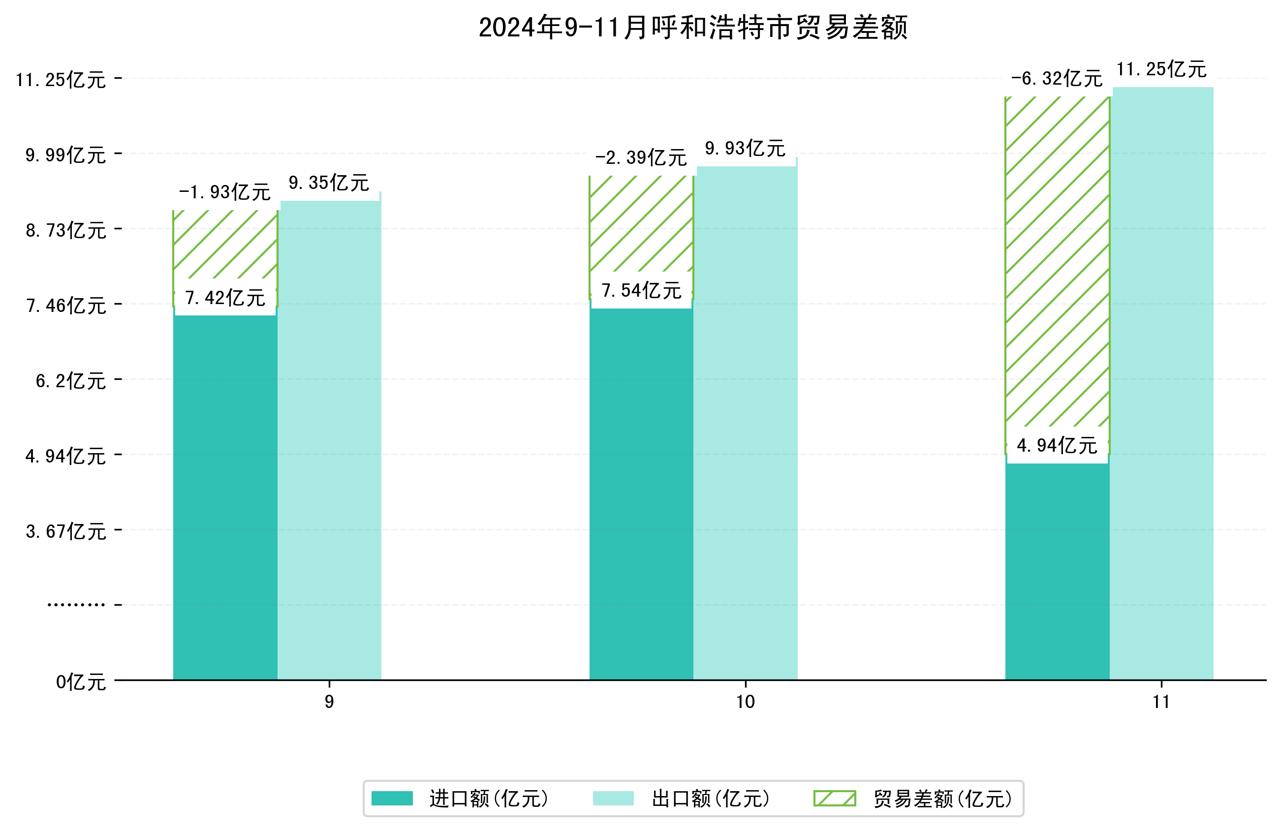 (图一:2024年9-11月呼和浩特市进出口总额)