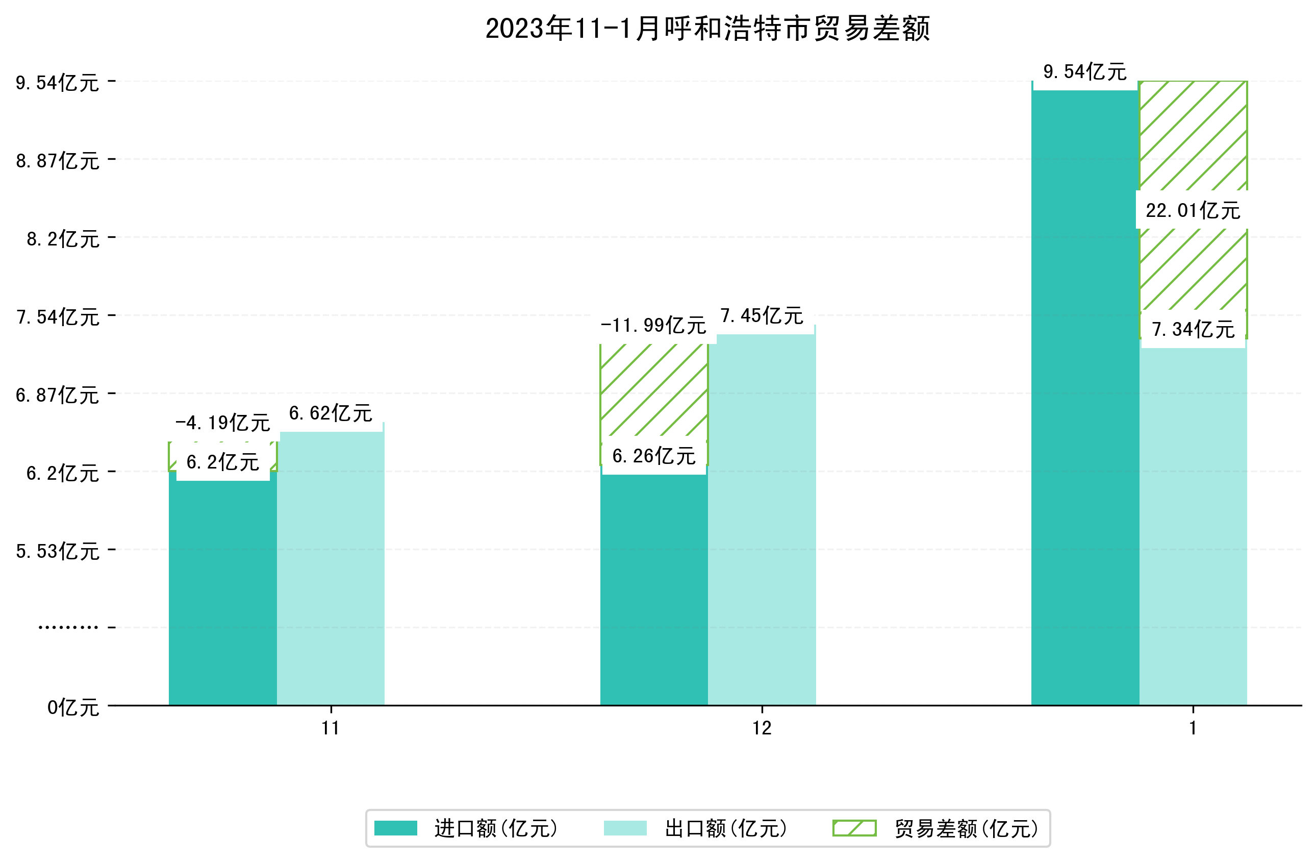 (图四:2023年11-1月呼和浩特市贸易差额)