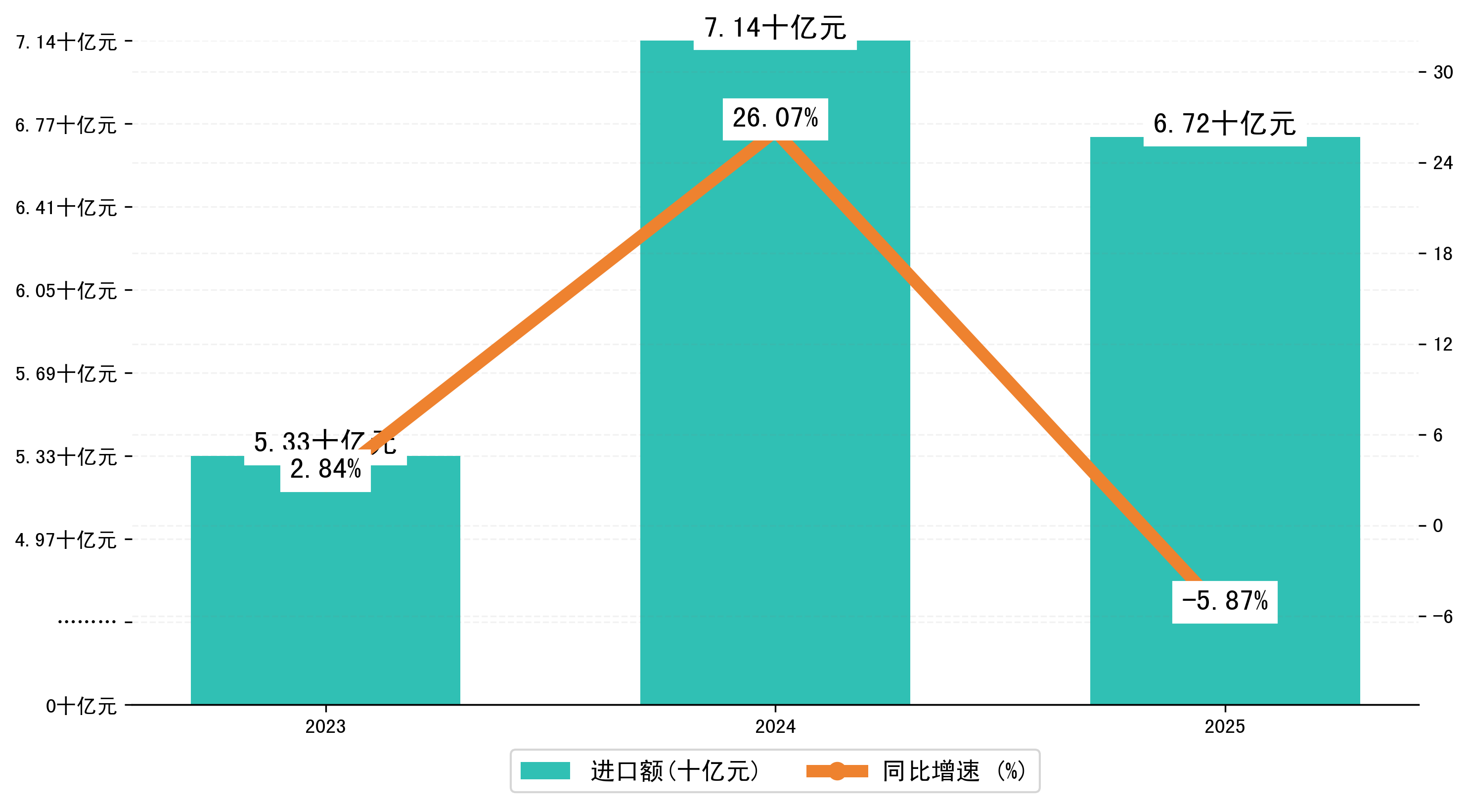 以人民币计,2025年1-8月呼和浩特市进口额为67,1642.0146万元,相比上年同期减少了4,1897.9668万元,同比减少了-5.90%。