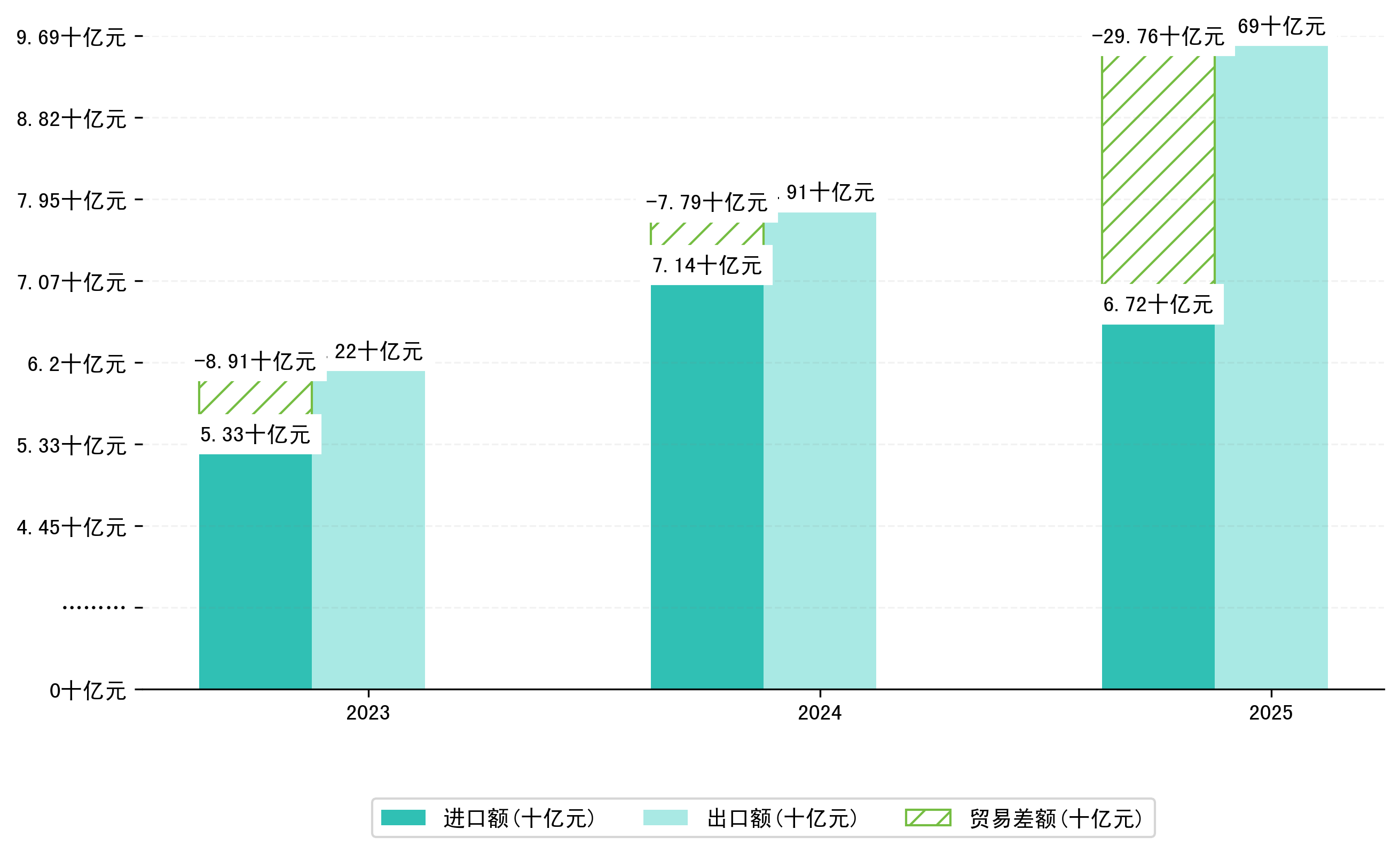 以人民币计,2025年1-8月呼和浩特市贸易差额为29,7567,0279万元(贸易顺差),相比上年同期增加了21,9636,2972万元,同比增加281.84%。
