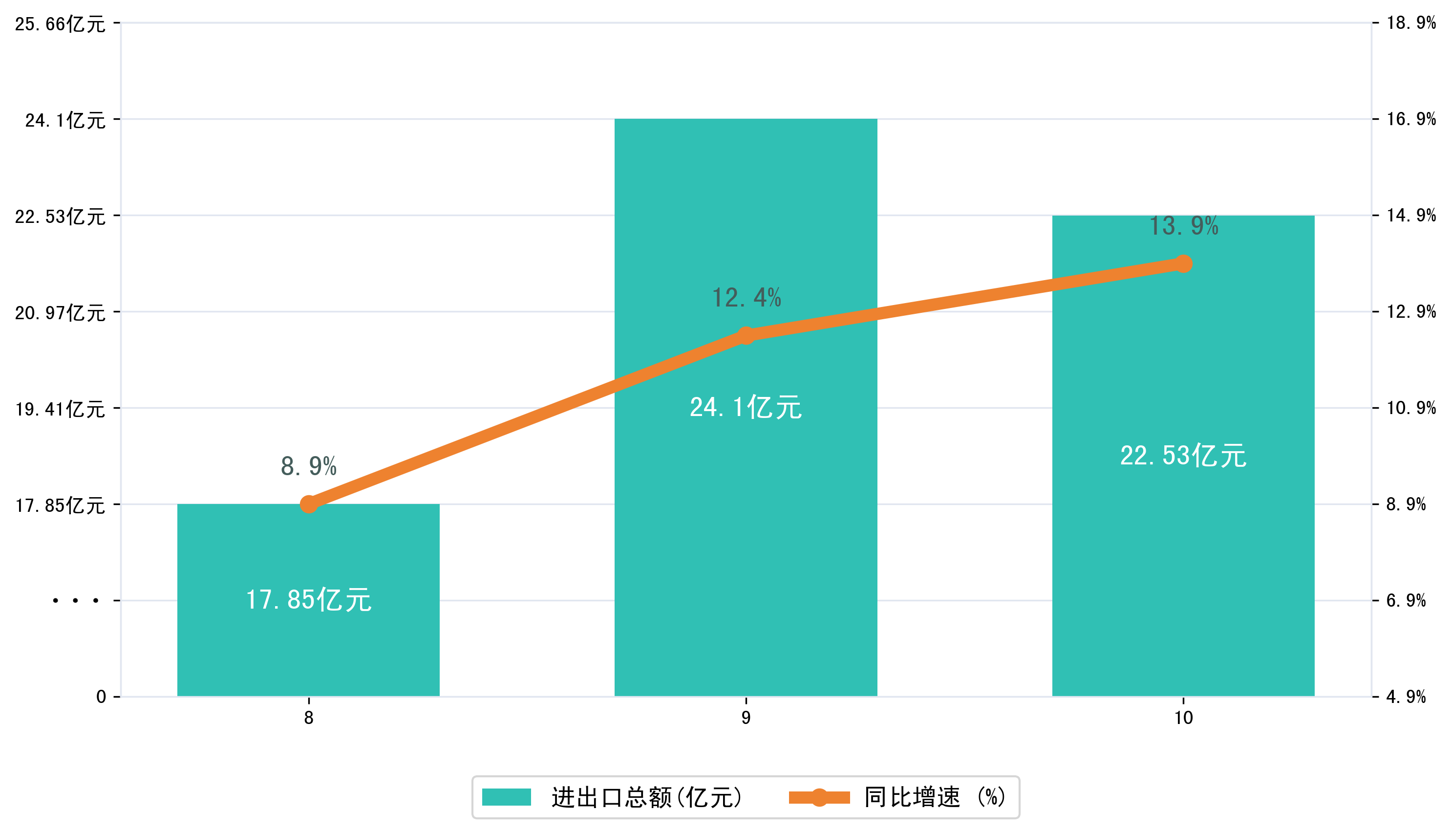 (图一:2025年8-10月呼和浩特市进出口总额)