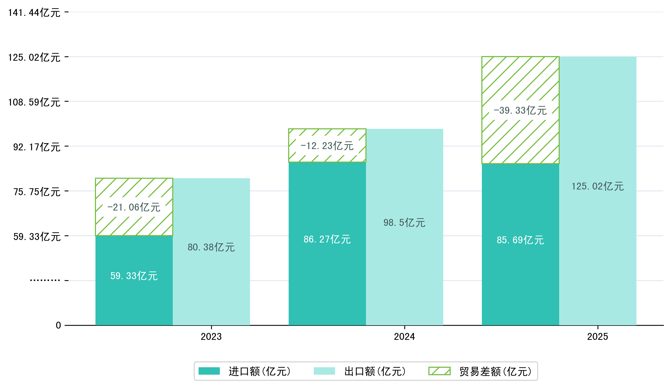 以人民币计,2025年1-10月呼和浩特市贸易差额为39,3265,7224万元(贸易顺差),相比上年同期增加了27,0942,6030万元,同比增加221.5%。