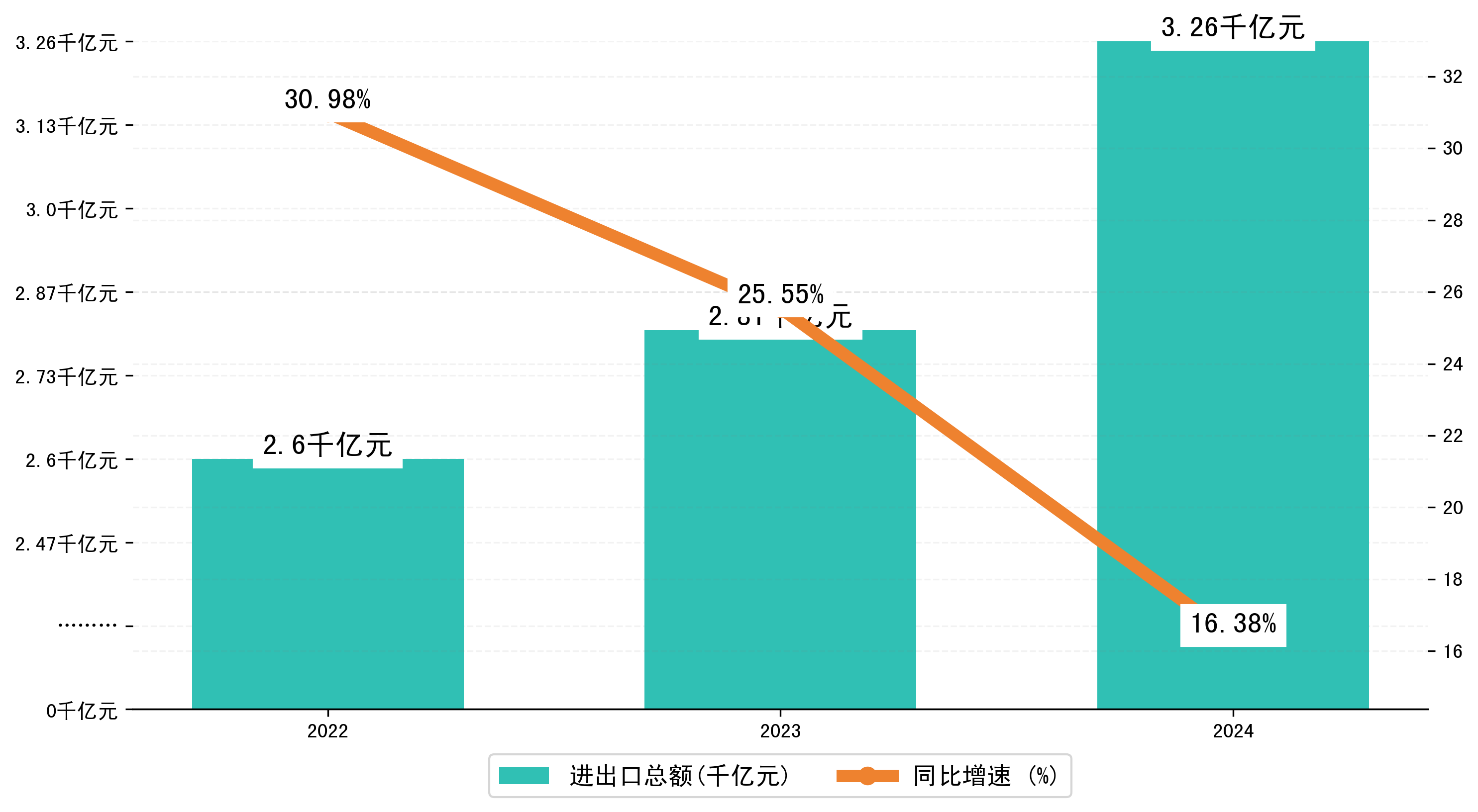 以人民币计,2024年1-10月惠州市进出口总额为3264,6326.3658万元,相比上年同期增加了459,4806.2967万元,同比增加了16.40%。