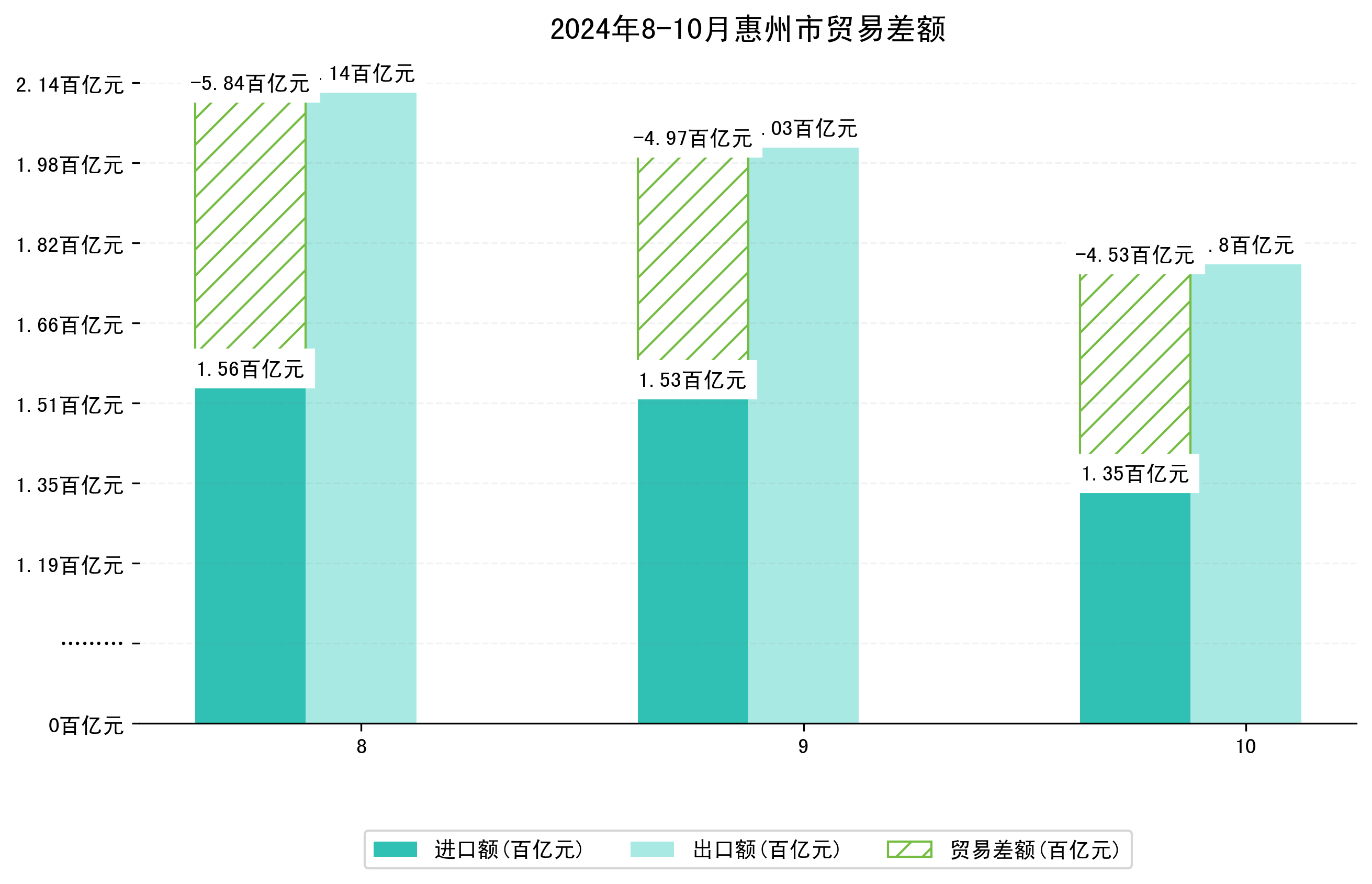 2024年10月惠州市进出口总额及进出口差额统计分析