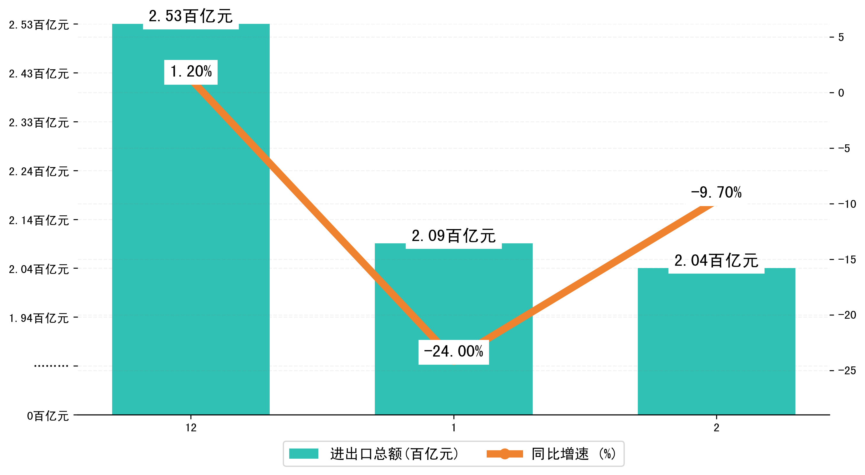 (图一:2023年12-2月惠州市进出口总额)