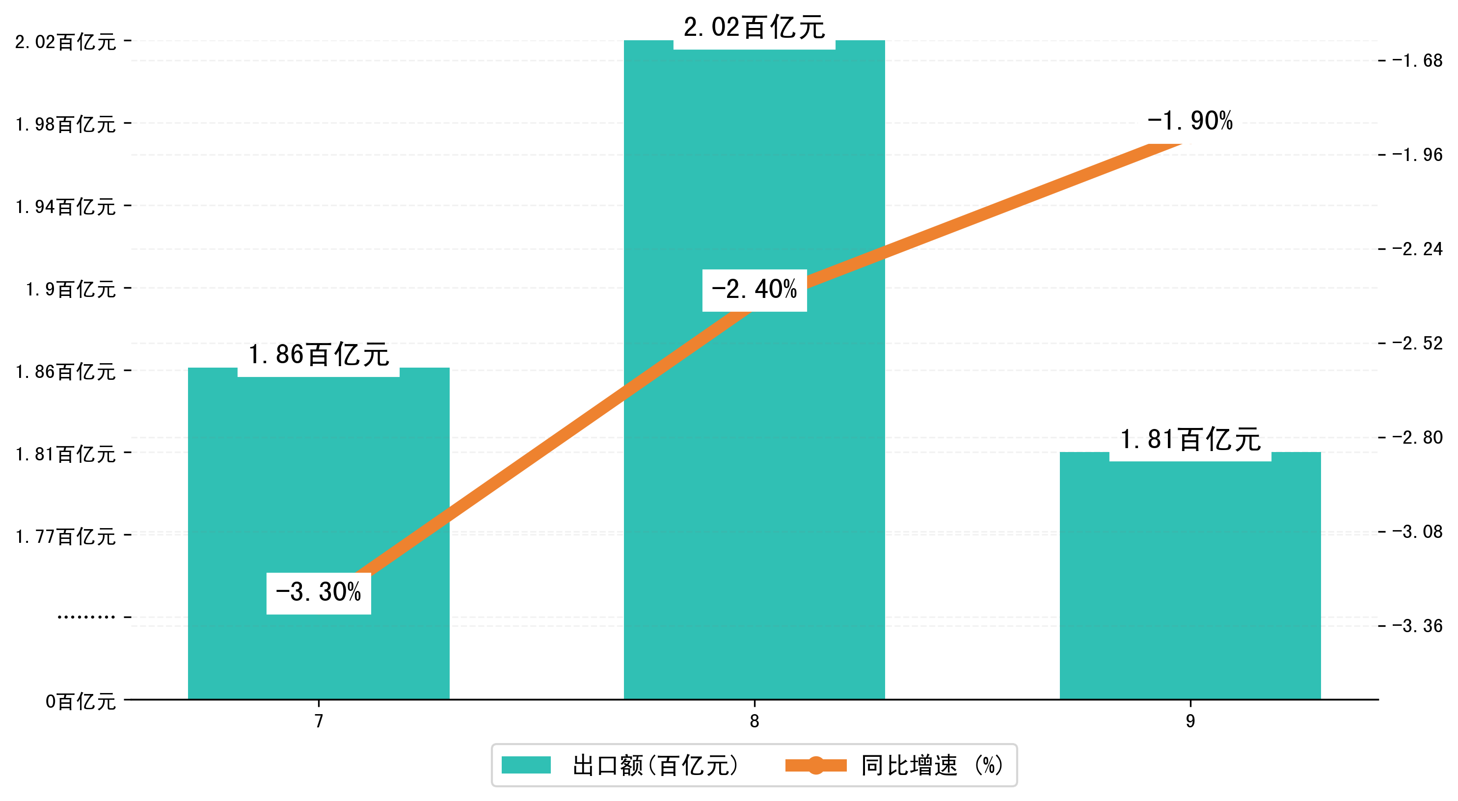 以人民币计,2023年9月惠州市出口额为181,3945.7194万元,相比上月减少了20,5337.7198万元;相比上年同期增加了3,1595.2548万元,同比减少了-1.90%。