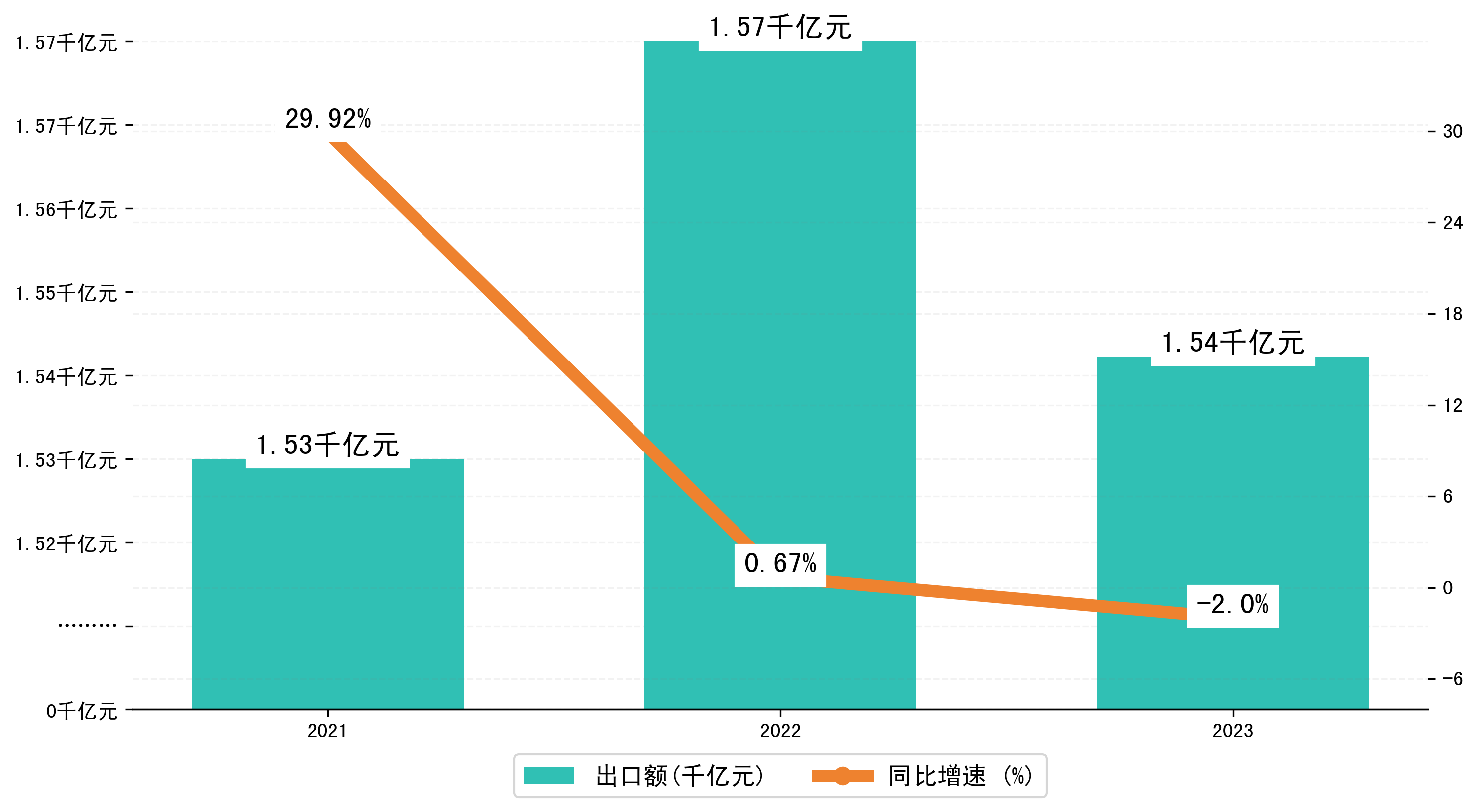 以人民币计,2023年1-9月惠州市出口额为1543,3221.4204万元,相比上年同期减少了31,4916.7906万元,同比减少了-1.90%。