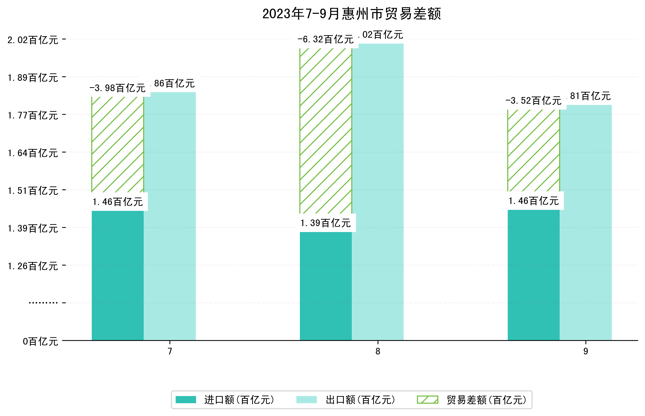 2023年9月惠州市进出口总额及进出口差额统计分析