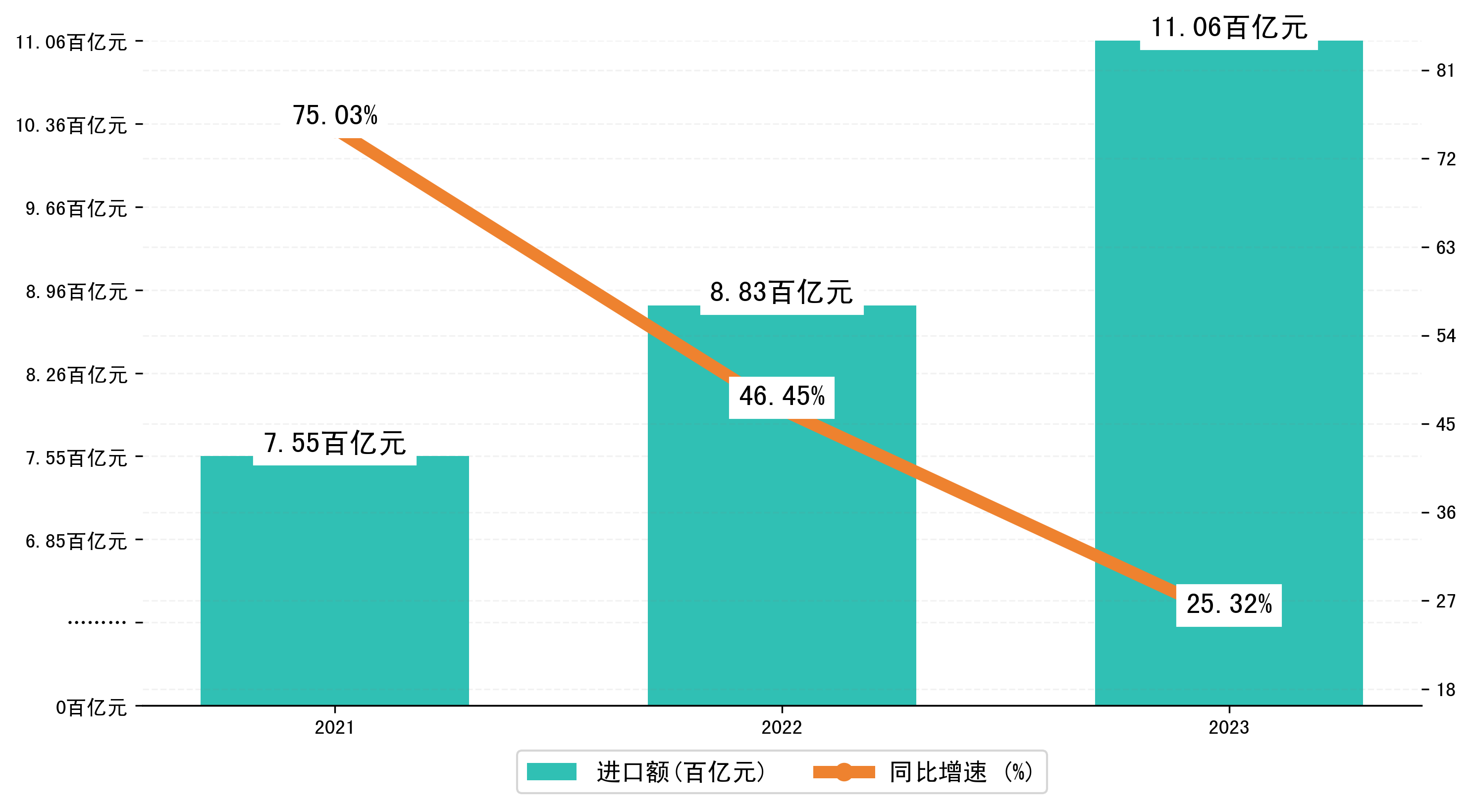 以人民币计,2023年1-10月惠州市进口额为1106,2033.8916万元,相比上年同期增加了223,5260.3485万元,同比增加了25.20%。