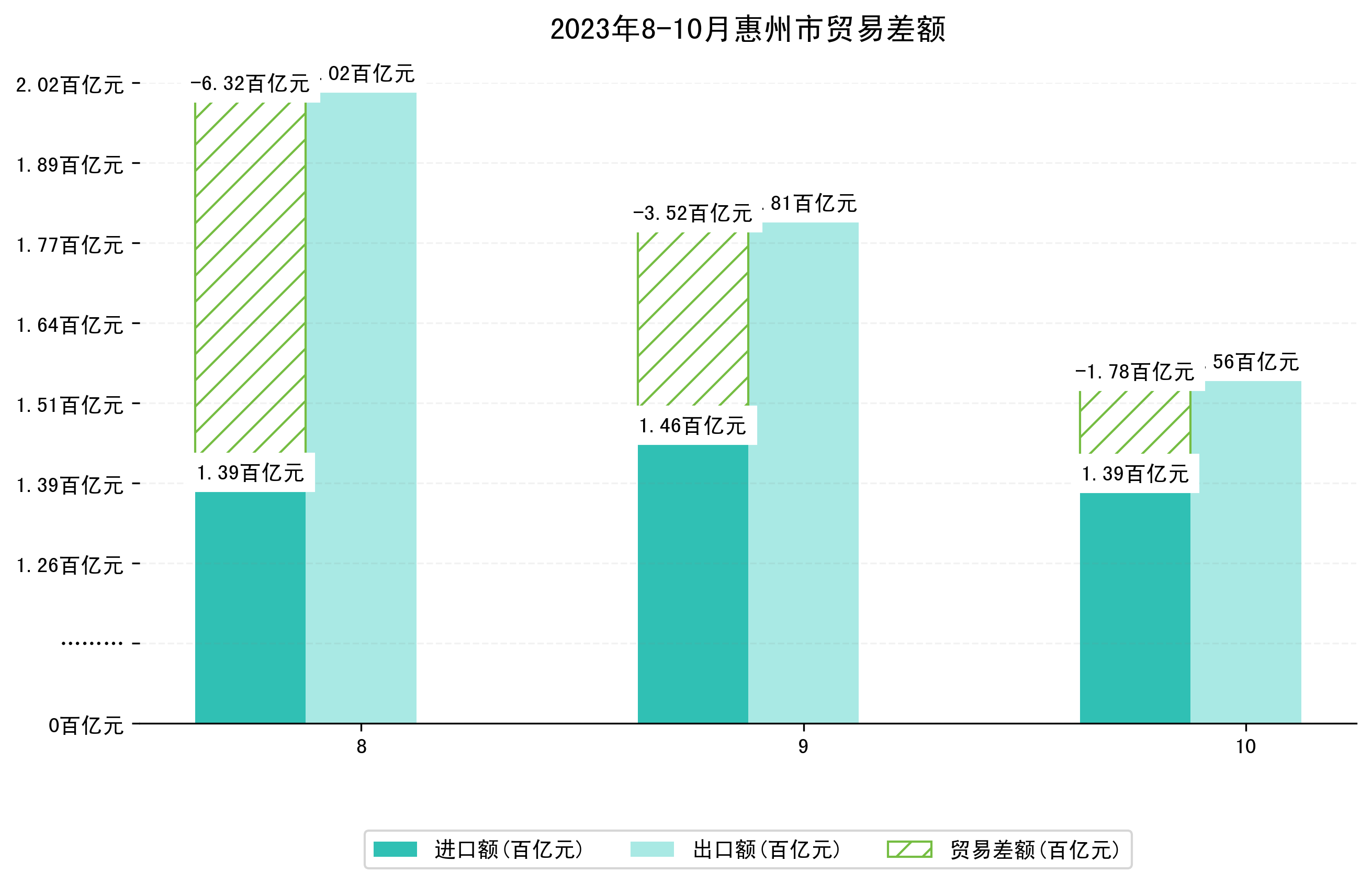 2023年10月惠州市进出口总额及进出口差额统计分析