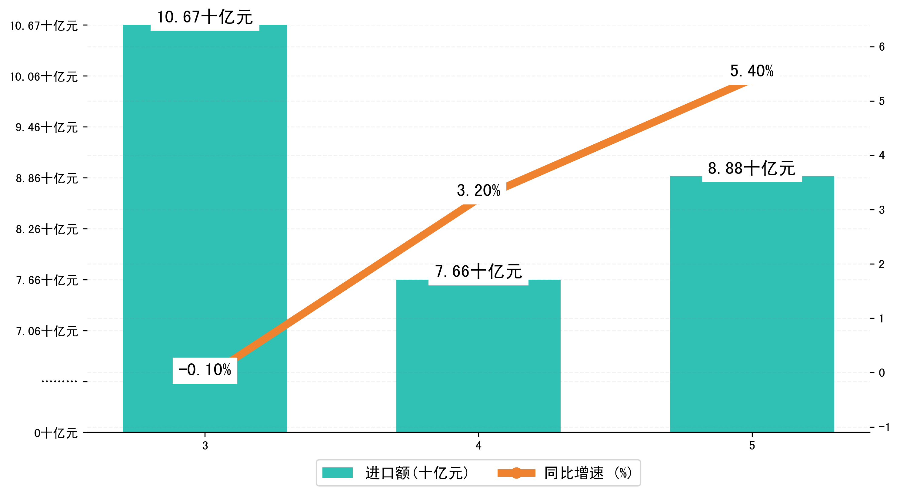 以人民币计,2023年5月惠州市进口额为88,7709.3136万元,相比上月增加了12,1979.9815万元;相比上年同期增加了10,9299.4099万元,同比增加了5.40%。
