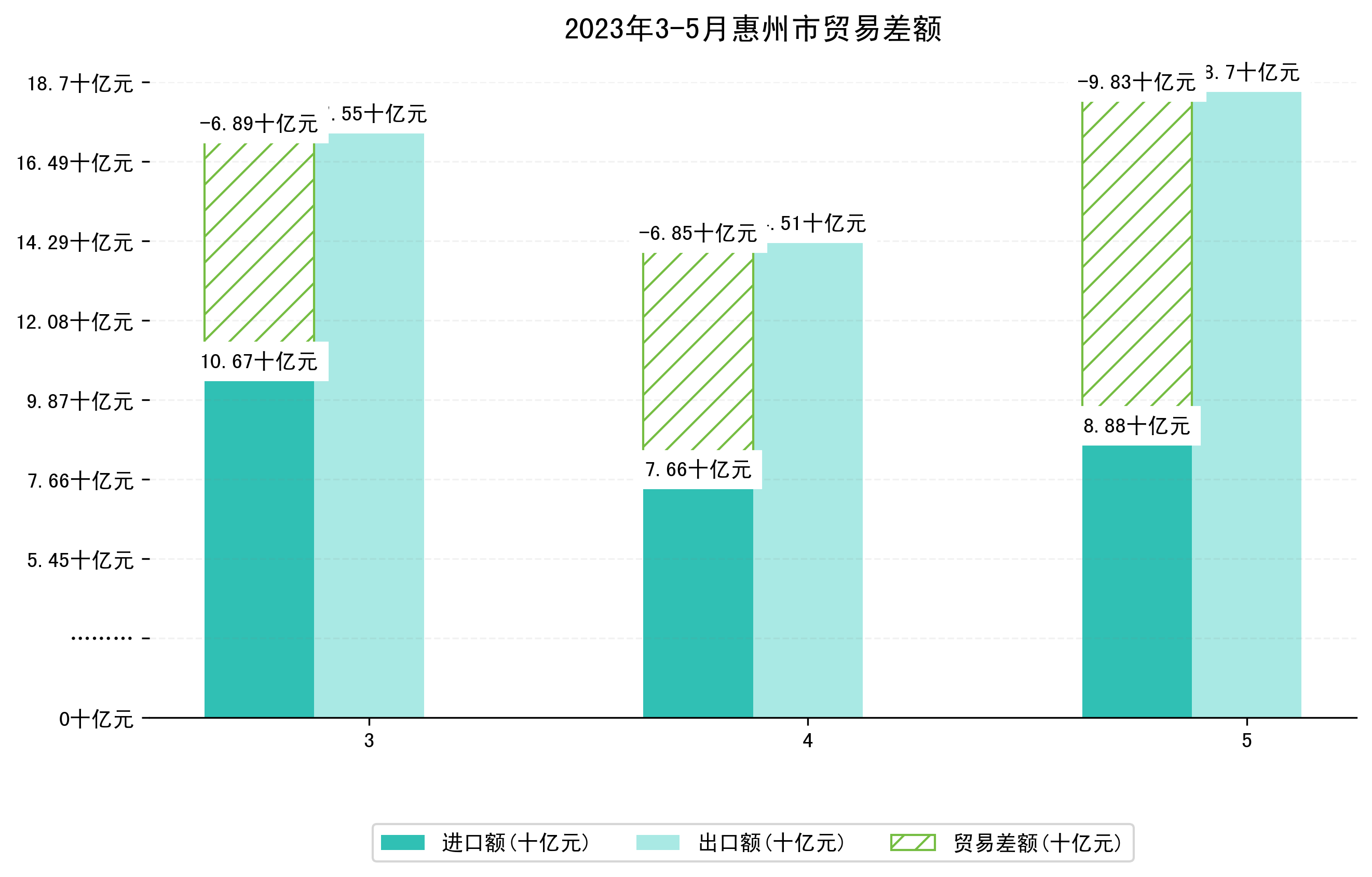 2023年5月惠州市进出口总额及进出口差额统计分析