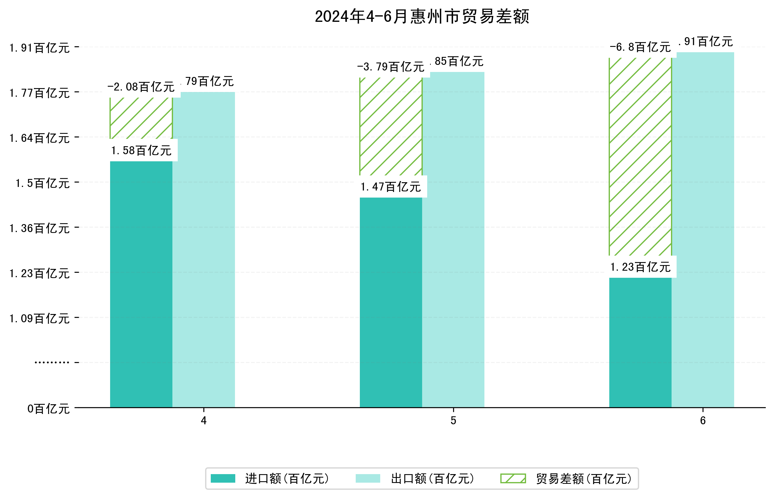 2024年6月惠州市进出口总额及进出口差额统计分析