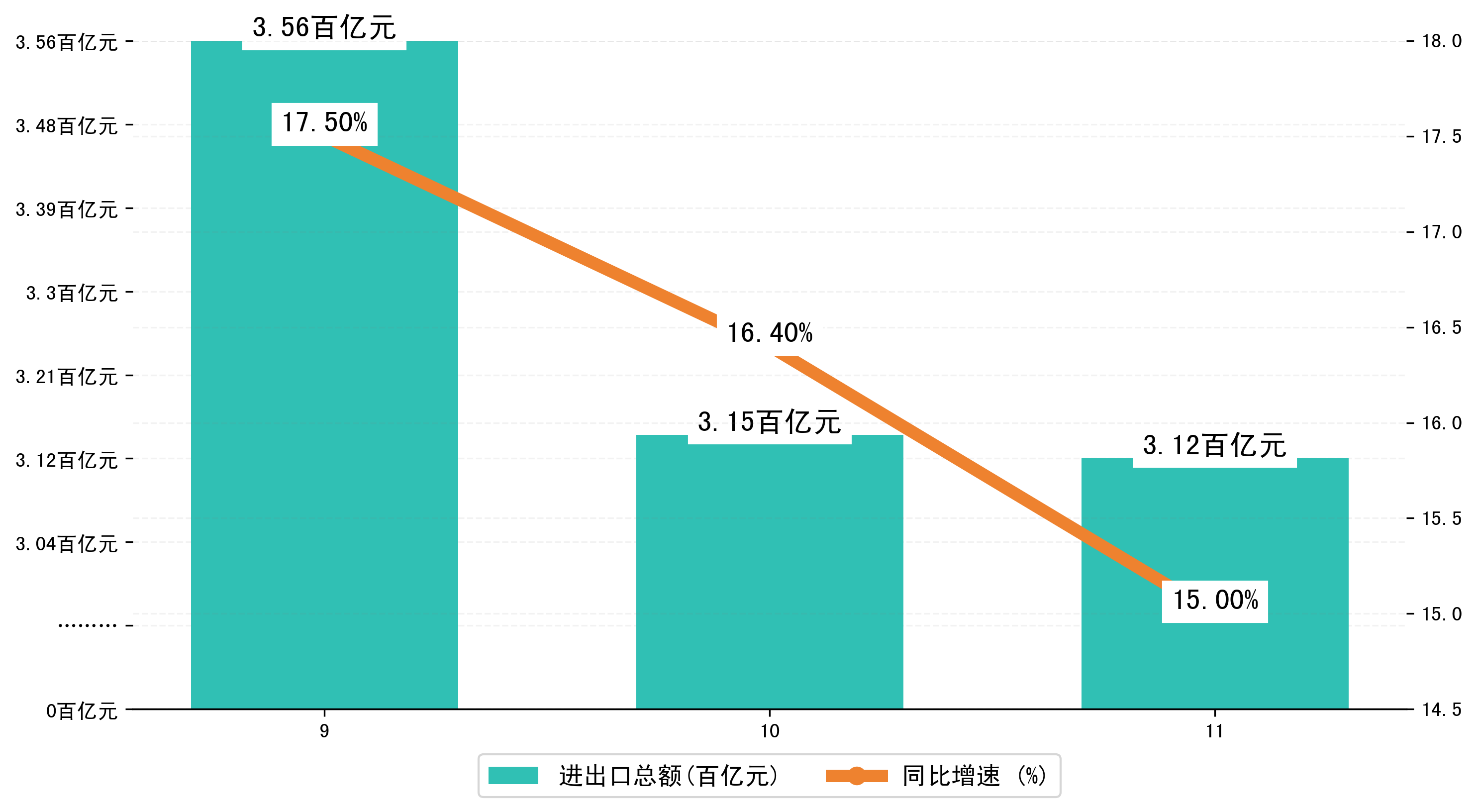 (图一:2024年9-11月惠州市进出口总额)