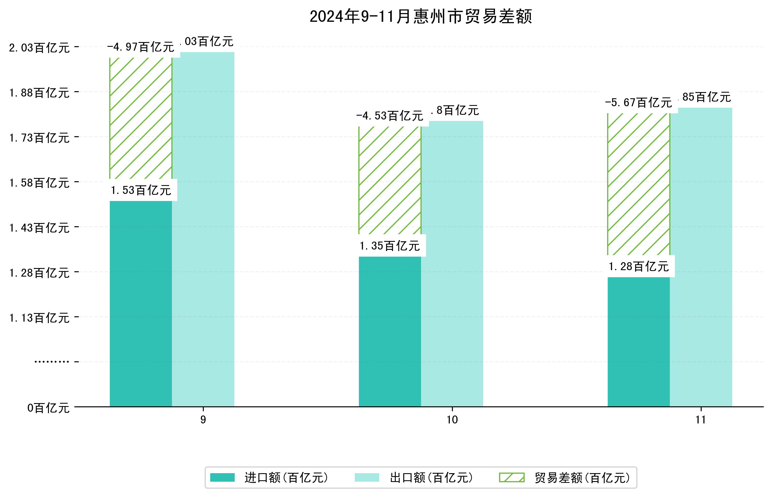 (图四:2024年9-11月惠州市贸易差额)