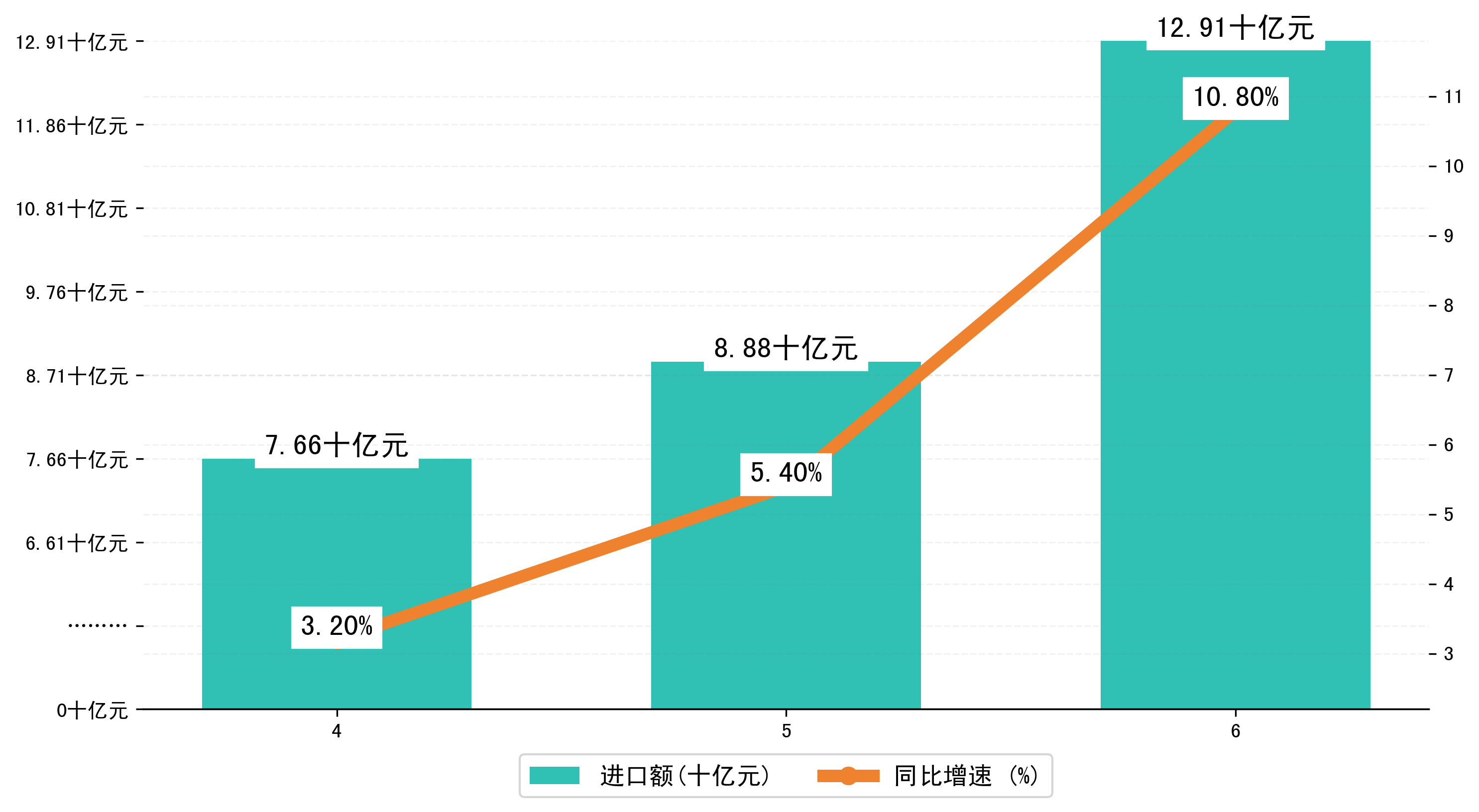 以人民币计,2023年6月惠州市进口额为129,1291.084万元,相比上月增加了40,3581.7704万元;相比上年同期增加了32,3062.5706万元,同比增加了10.80%。
