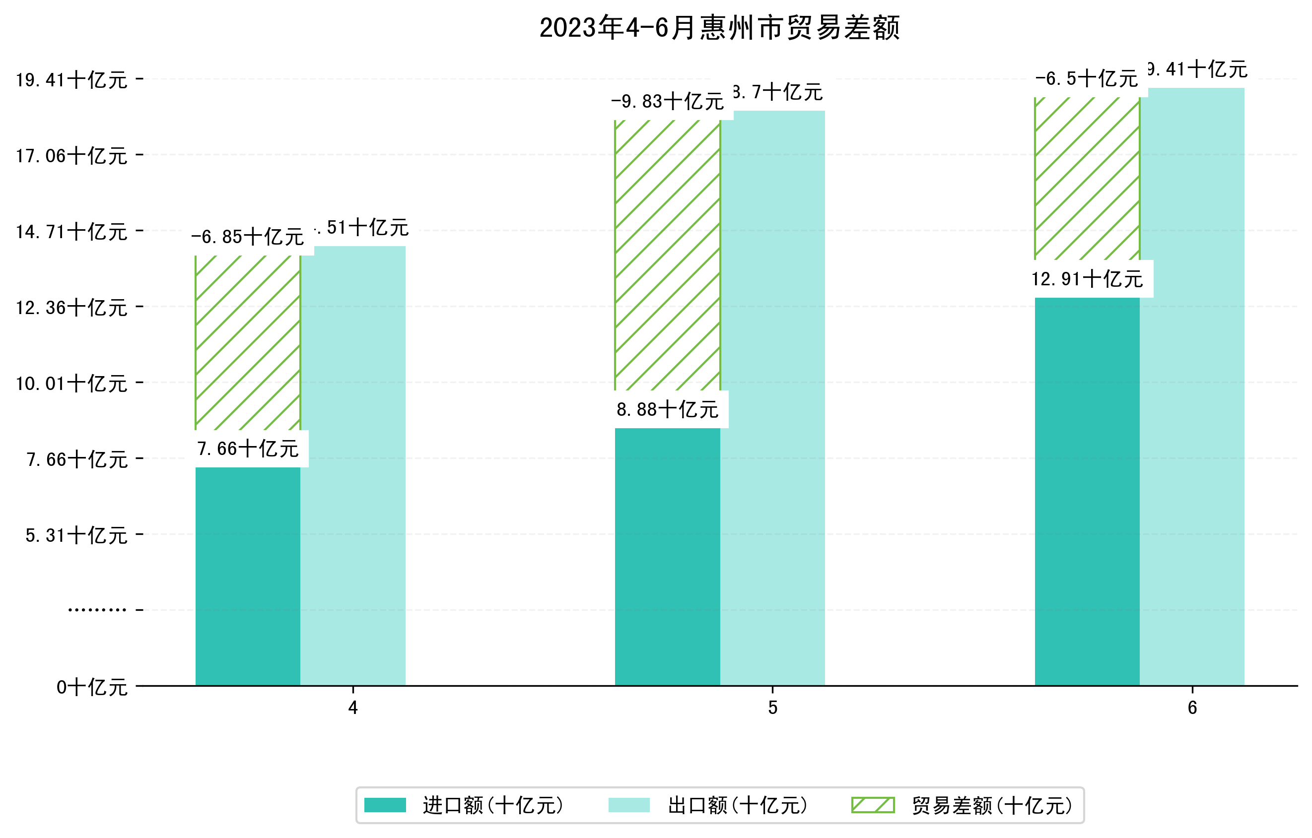 2023年6月惠州市进出口总额及进出口差额统计分析