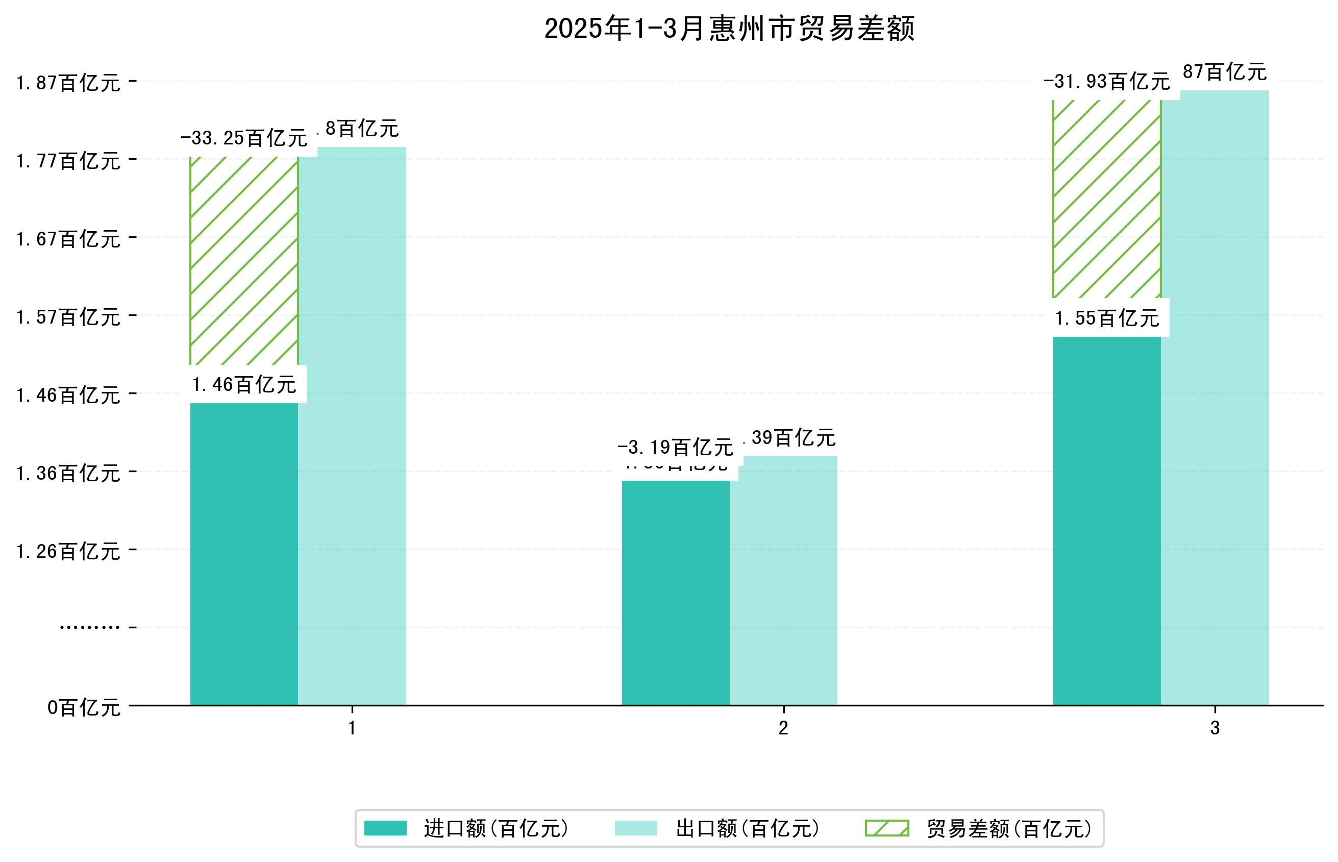 2025年3月惠州市进出口总额及进出口差额统计分析