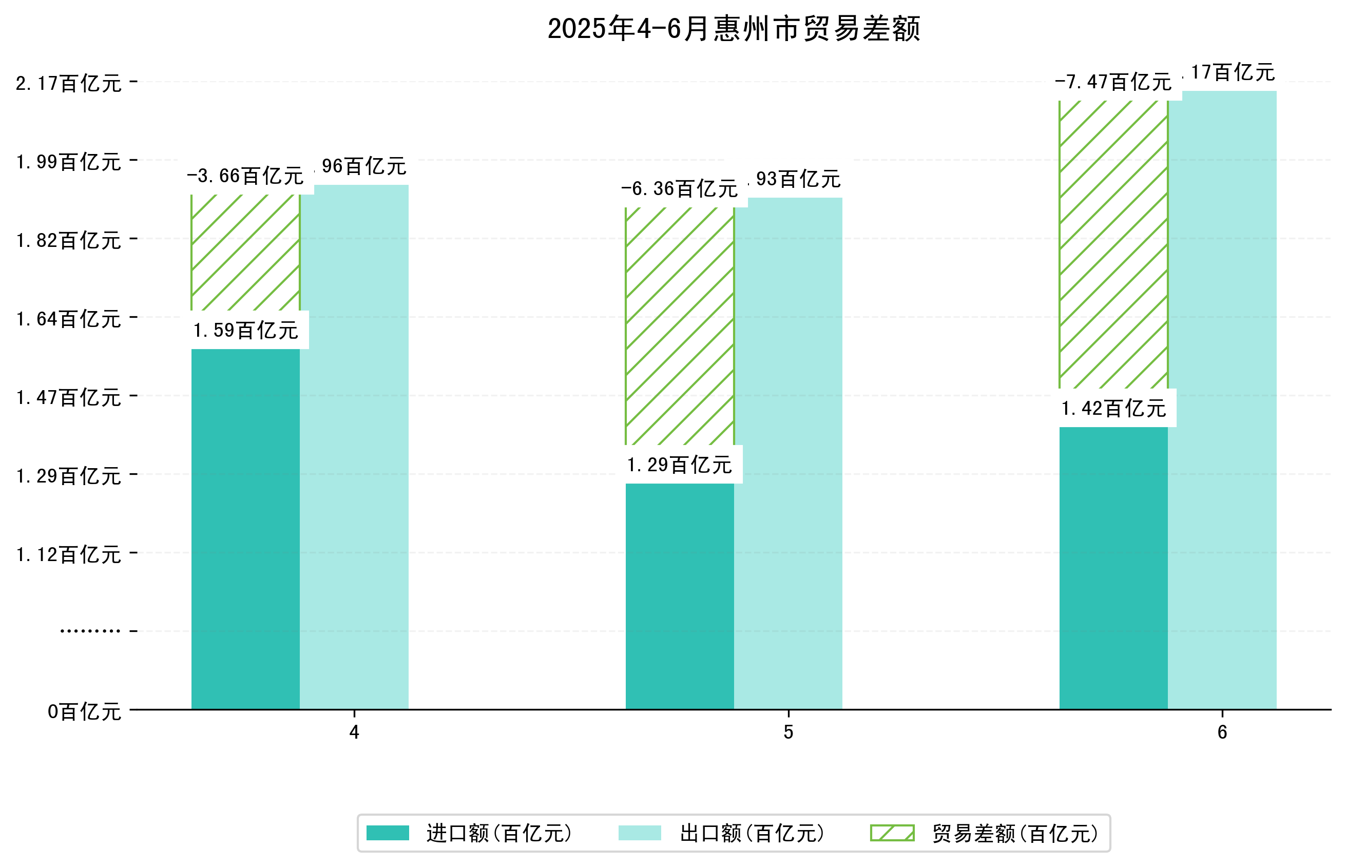 2025年6月惠州市进出口总额及进出口差额统计分析