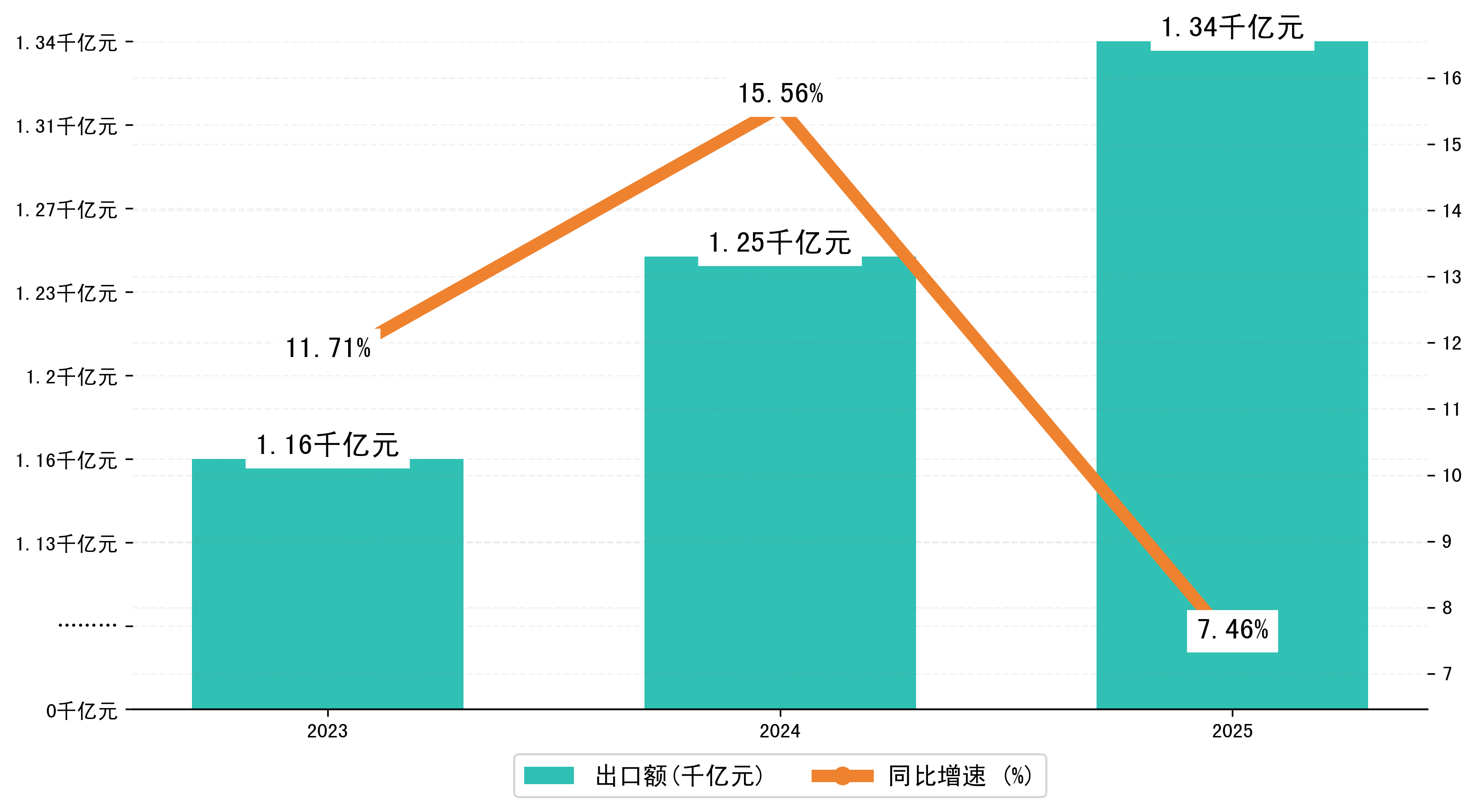 以人民币计,2025年1-7月惠州市出口额为1342,4097.3962万元,相比上年同期增加了93,1530.9142万元,同比增加了7.50%。