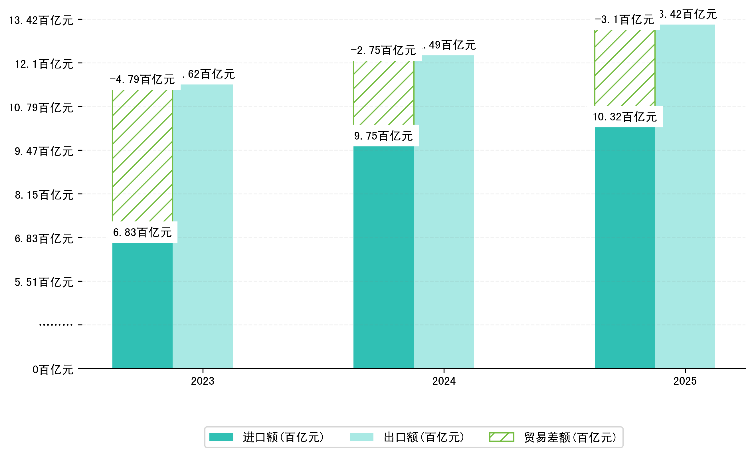 以人民币计,2025年1-7月惠州市贸易差额为310,1732,2818万元(贸易顺差),相比上年同期增加了35,6650,3693万元,同比增加12.99%。