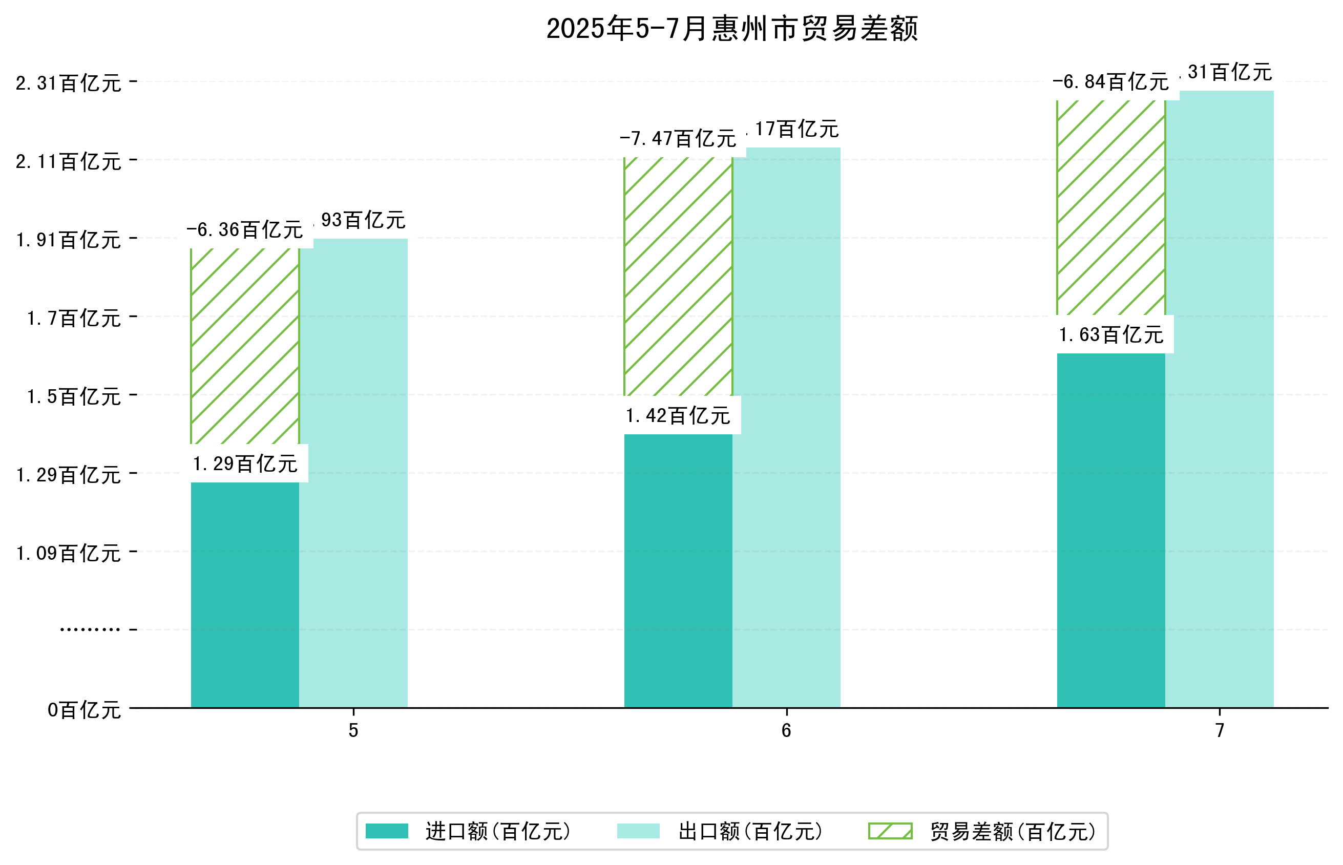 2025年7月惠州市进出口总额及进出口差额统计分析