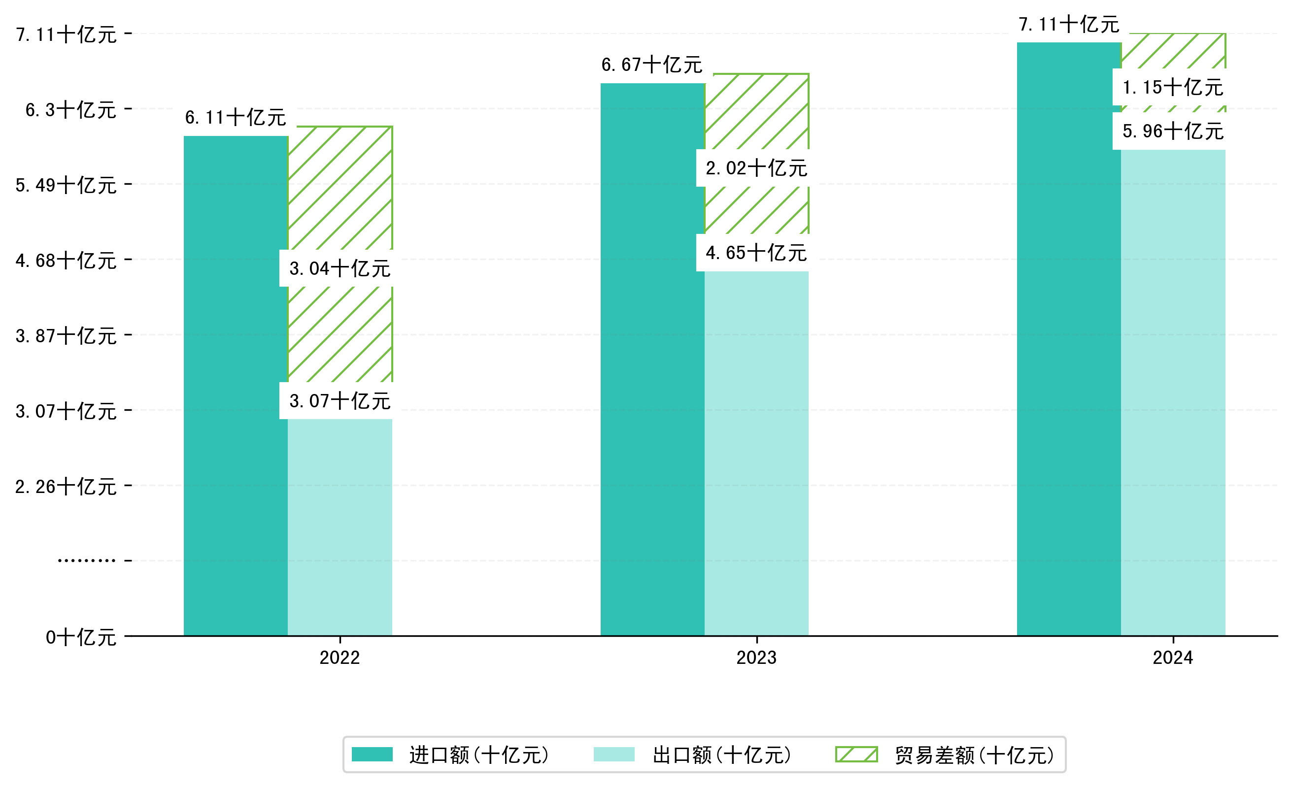 以人民币计,2024年8月珲春市贸易差额为2651,0532万元(贸易逆差),相比上月减少了6,7890,2020万元,即9540,8348万美元;相比上年同期增加了3,8848,3133万元,同比增加-93.61%。