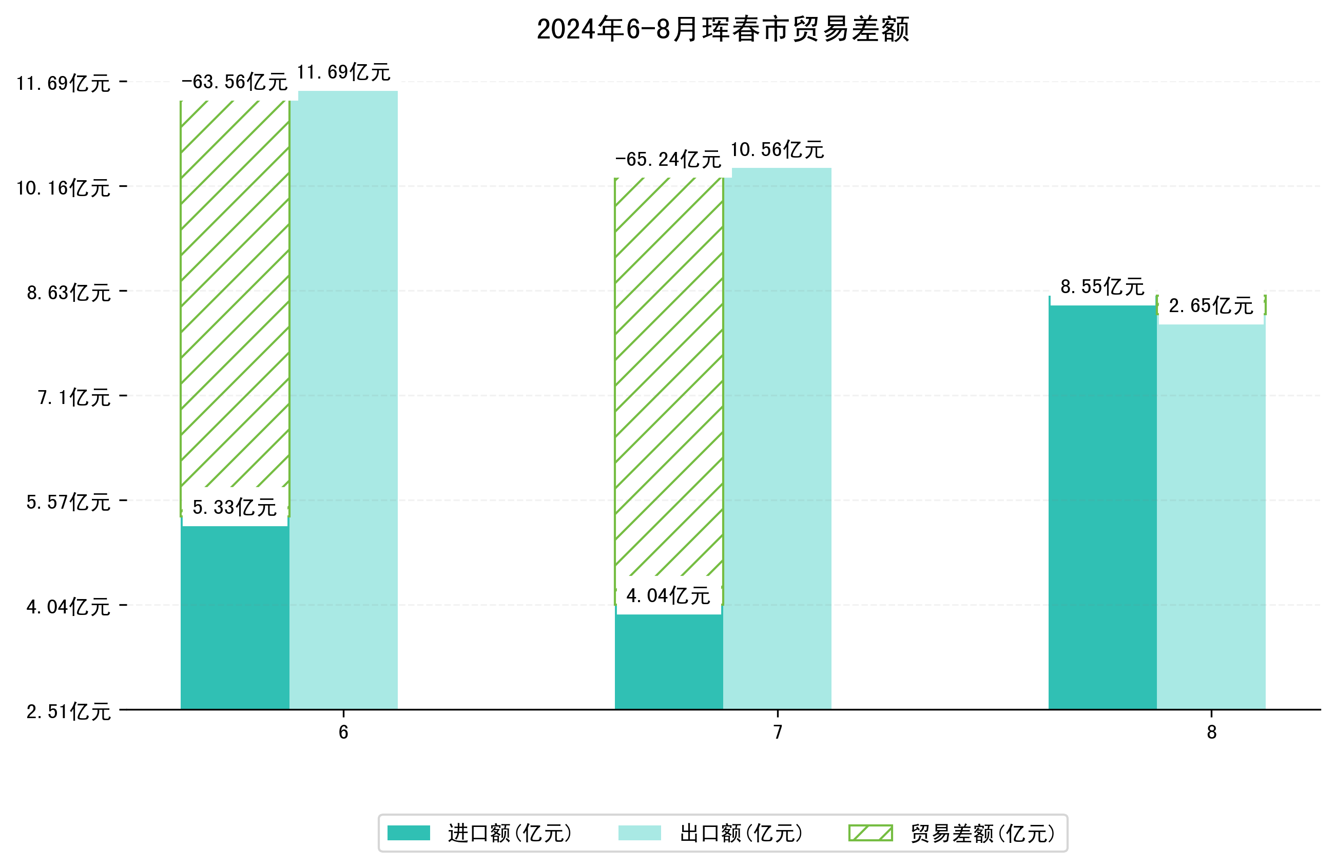 2024年8月珲春市进出口总额及进出口差额统计分析