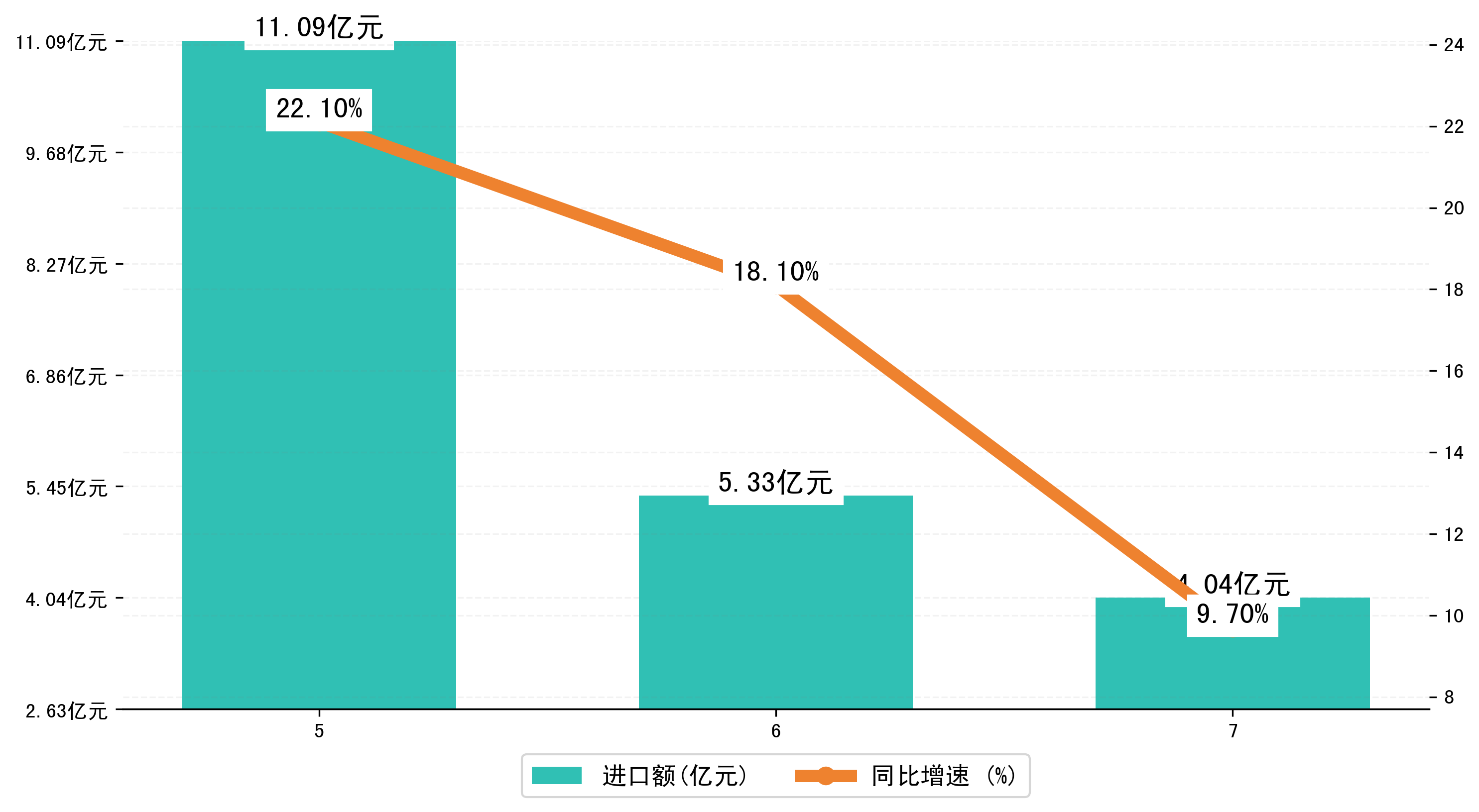 以美元计,2024年1-7月珲春市进口额为8,7405.1826万美元,相比上年同期增加了4881.8116万美元,同比增加7.00%。
