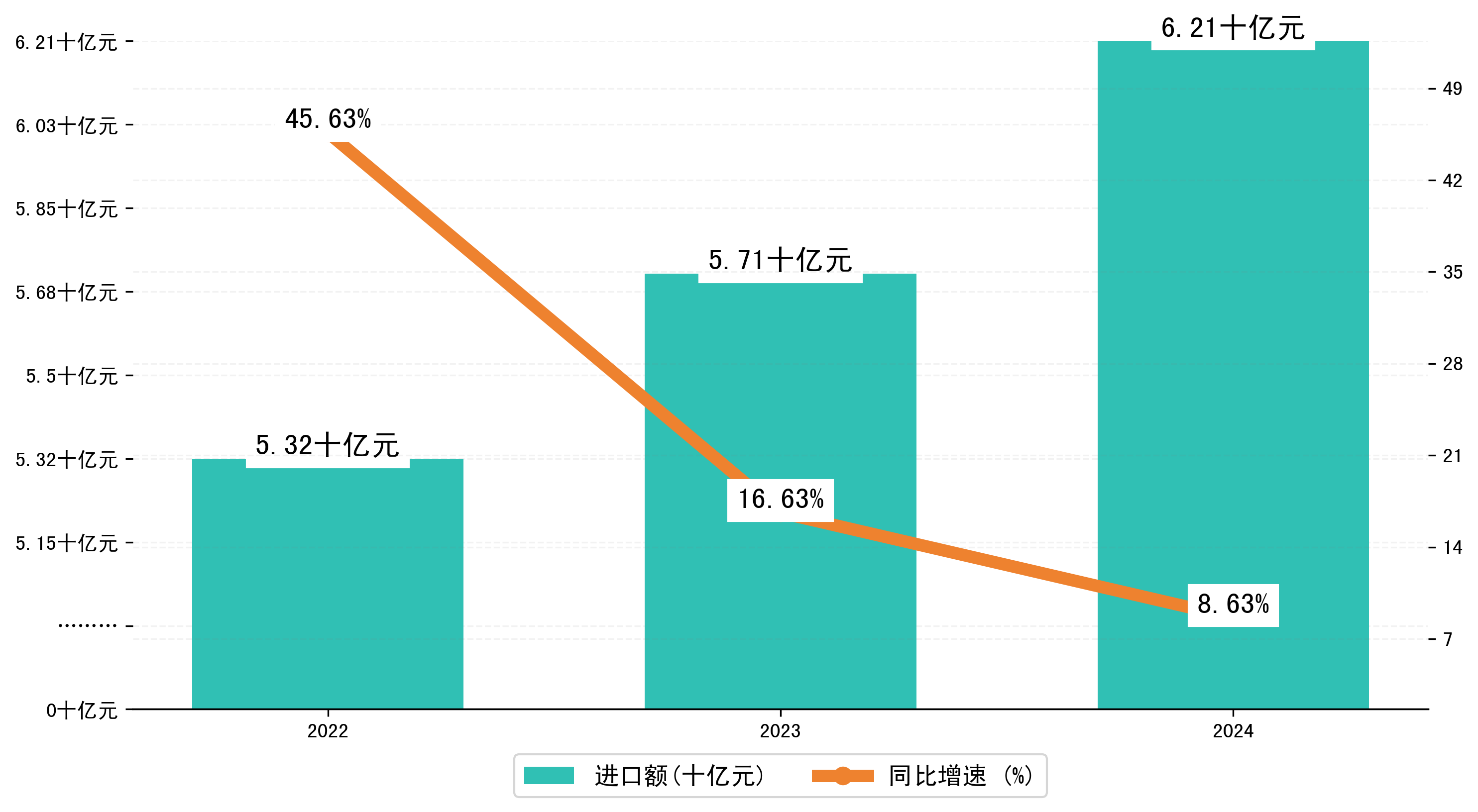 以人民币计,2024年1-7月珲春市进口额为62,0772.758万元,相比上年同期增加了4,9312.3134万元,同比增加了9.70%。