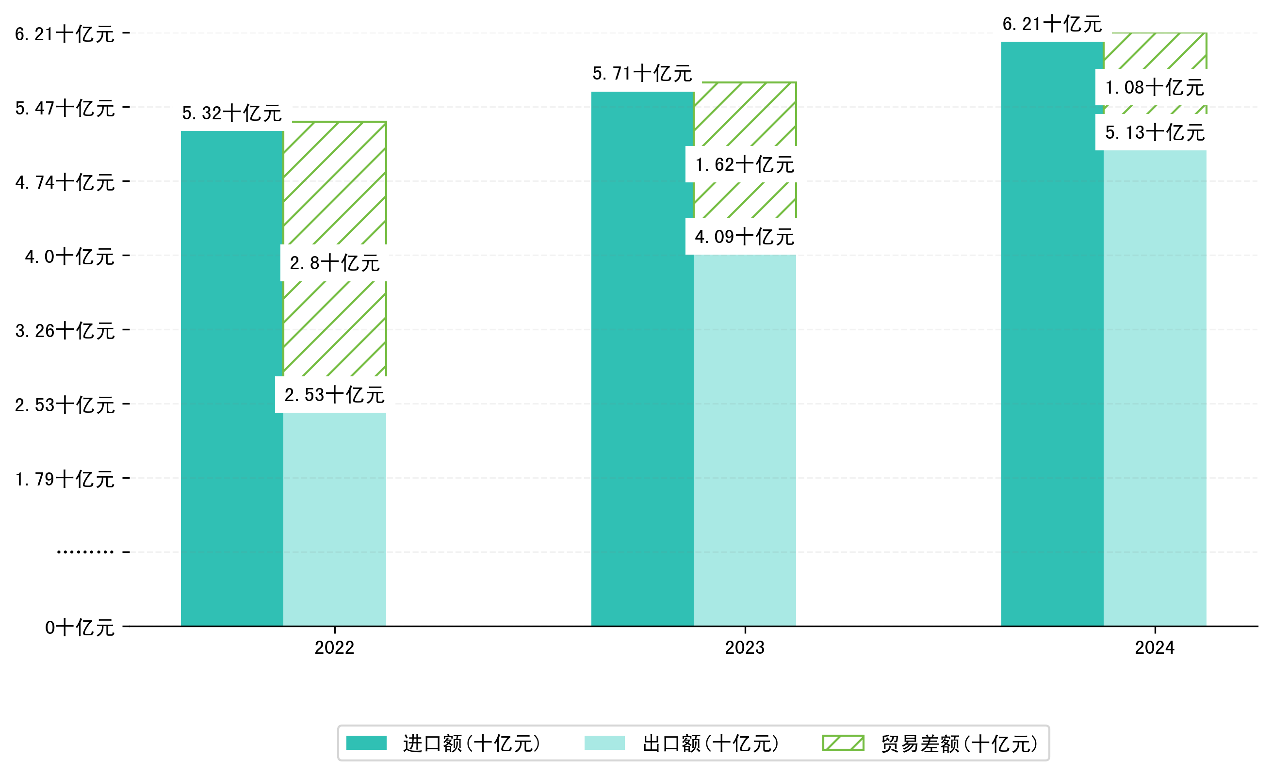 以人民币计,2024年1-7月珲春市贸易差额为10,7818,8852万元(贸易逆差),相比上年同期增加了5,4248,0439万元,同比增加-33.47%。