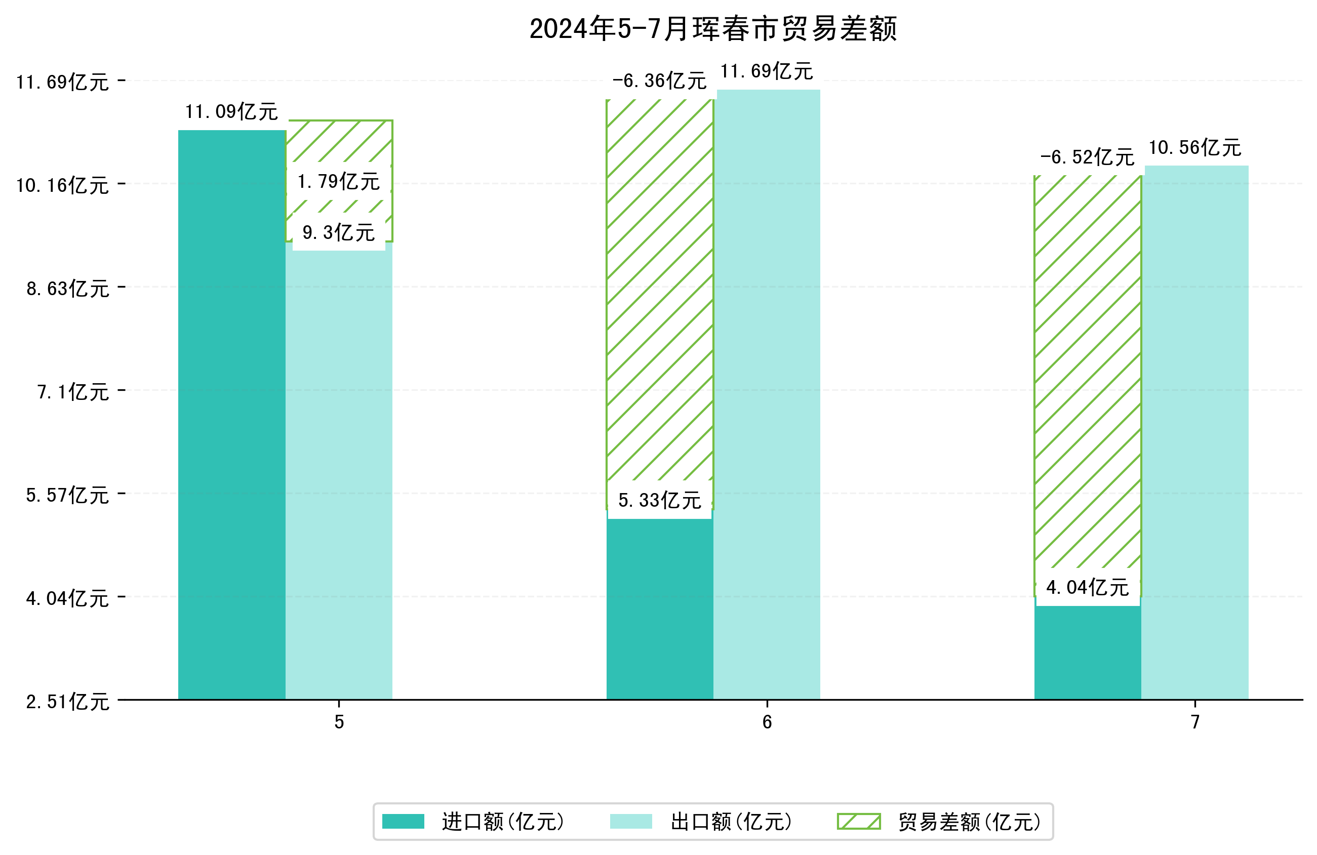 2024年7月珲春市进出口总额及进出口差额统计分析
