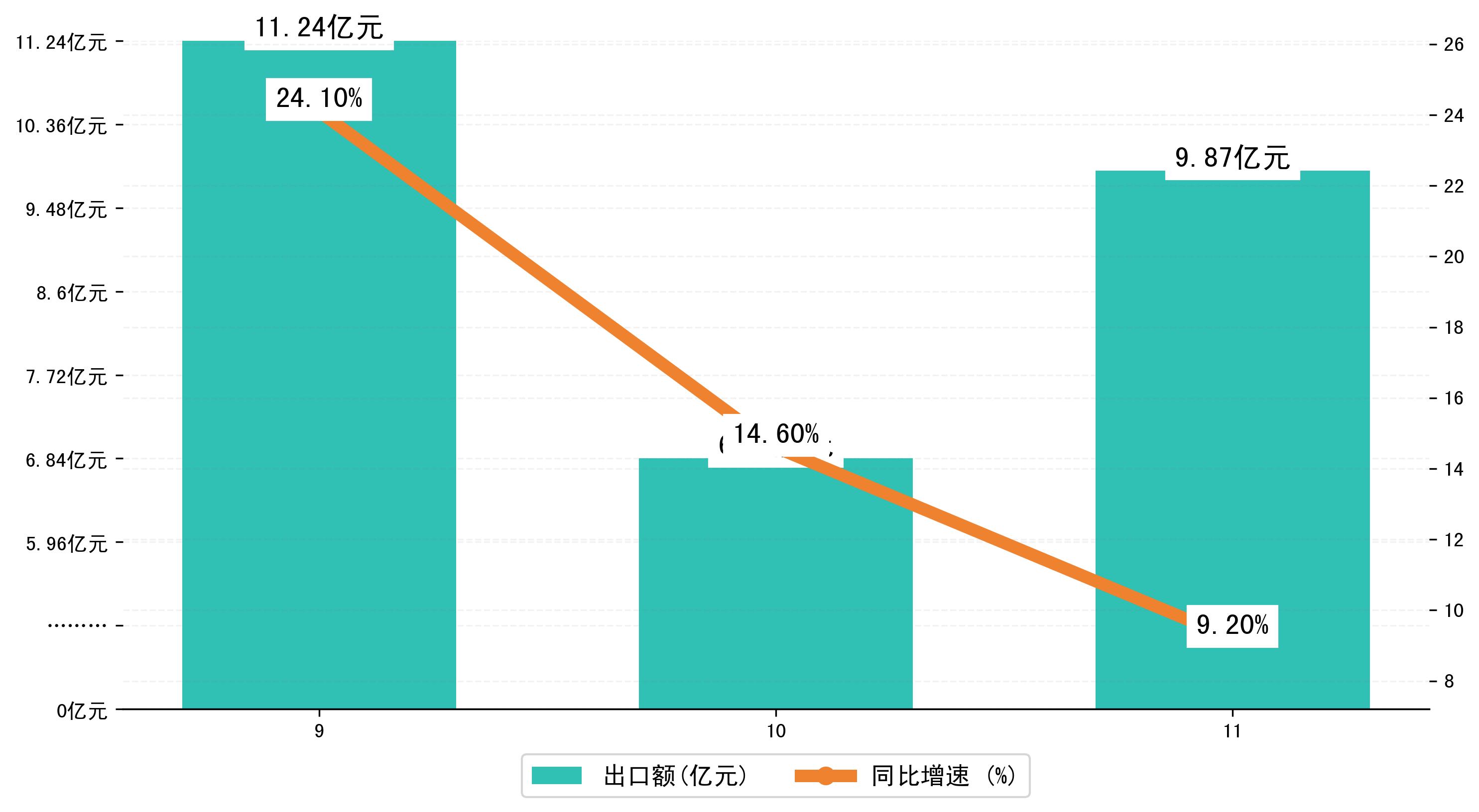 (图二:2024年9-11月珲春市出口额)