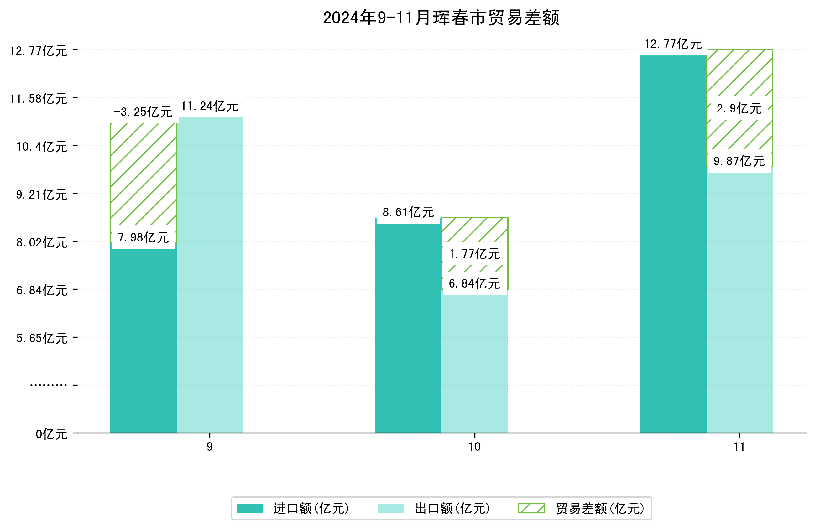 (图一:2024年9-11月珲春市进出口总额)