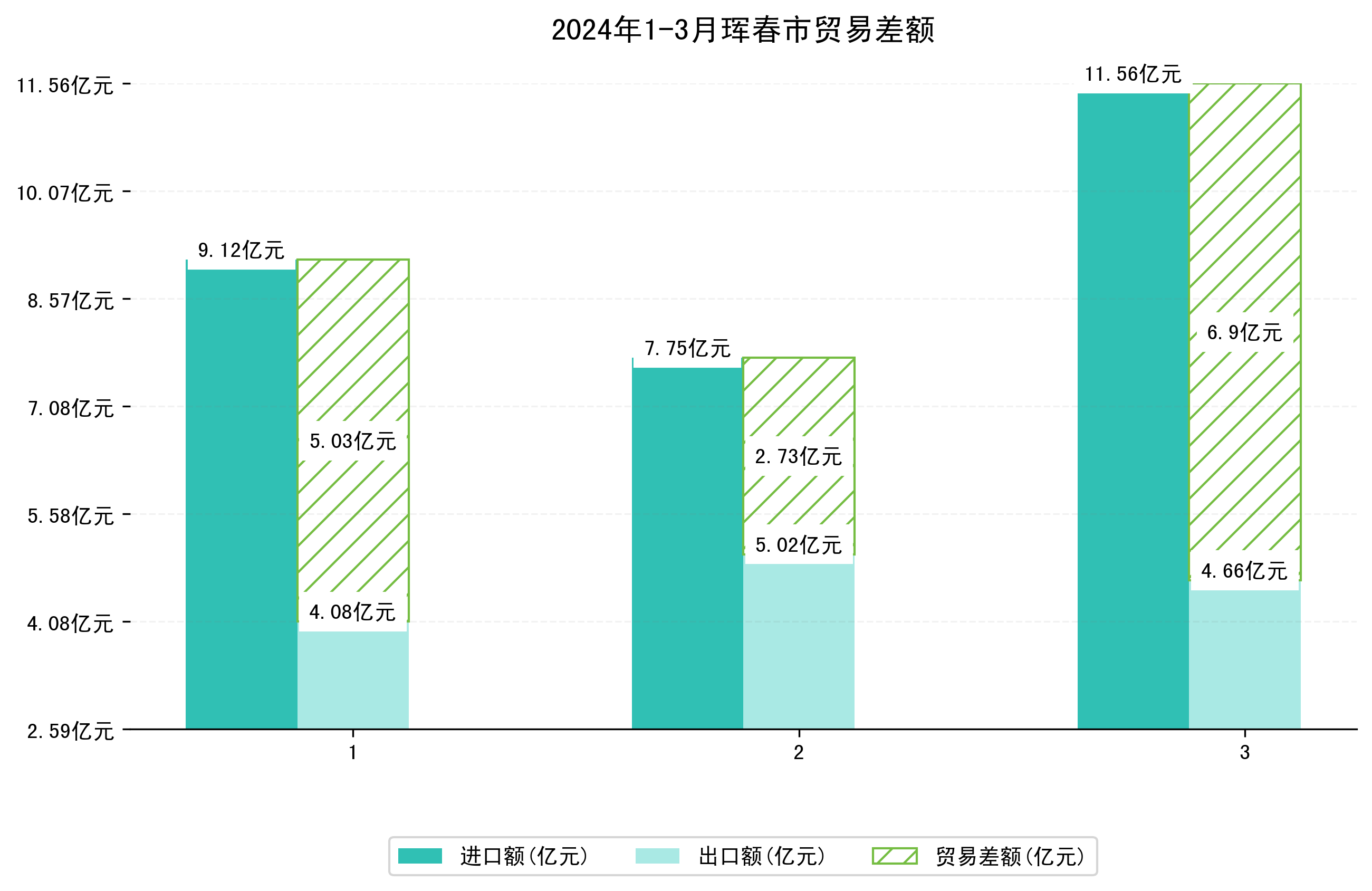 2024年3月珲春市进出口总额及进出口差额统计分析