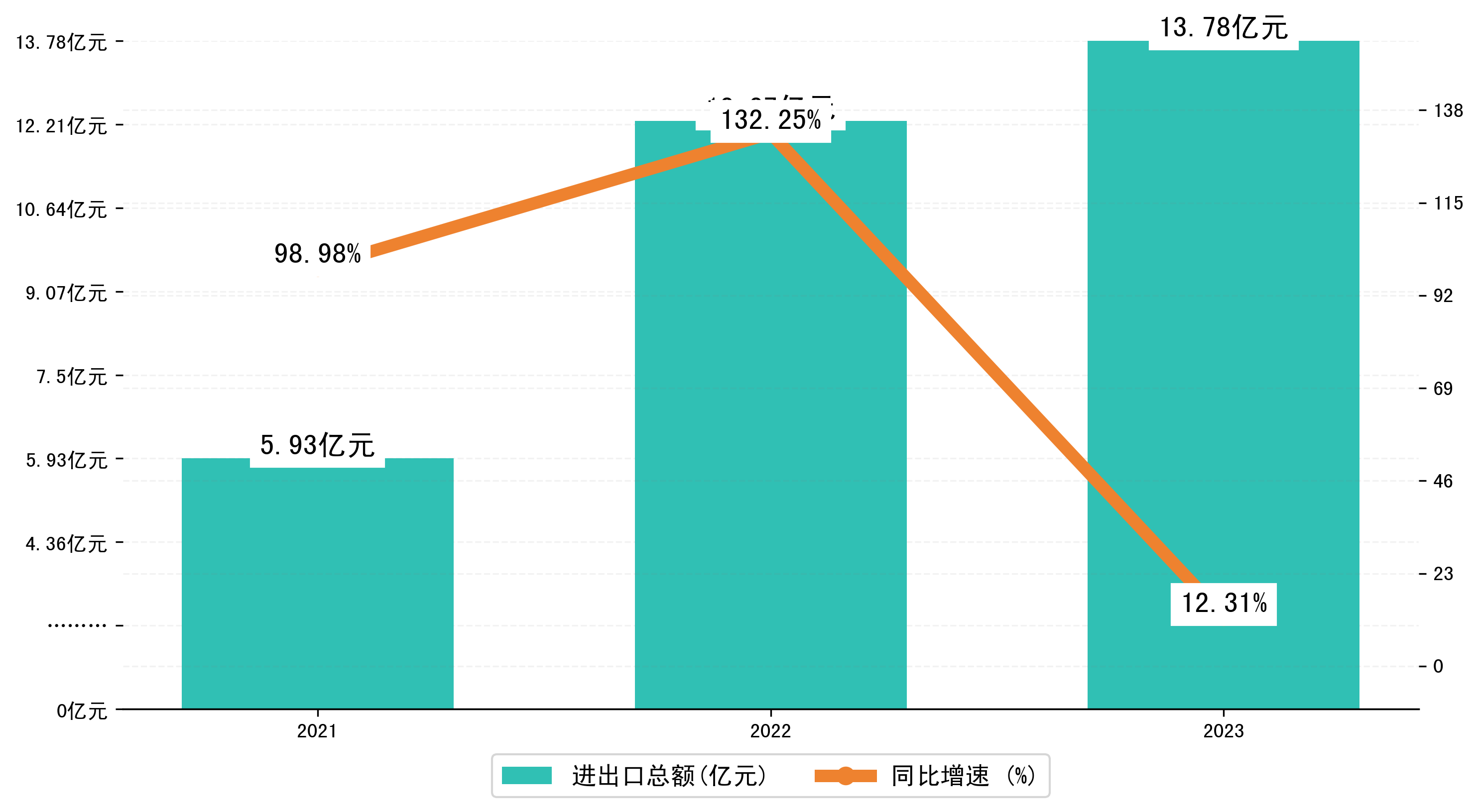 以人民币计,2023年1-1月珲春市进出口总额为13,7826.2276万元,相比上年同期增加了1,5105.1601万元,同比增加了12.70%。