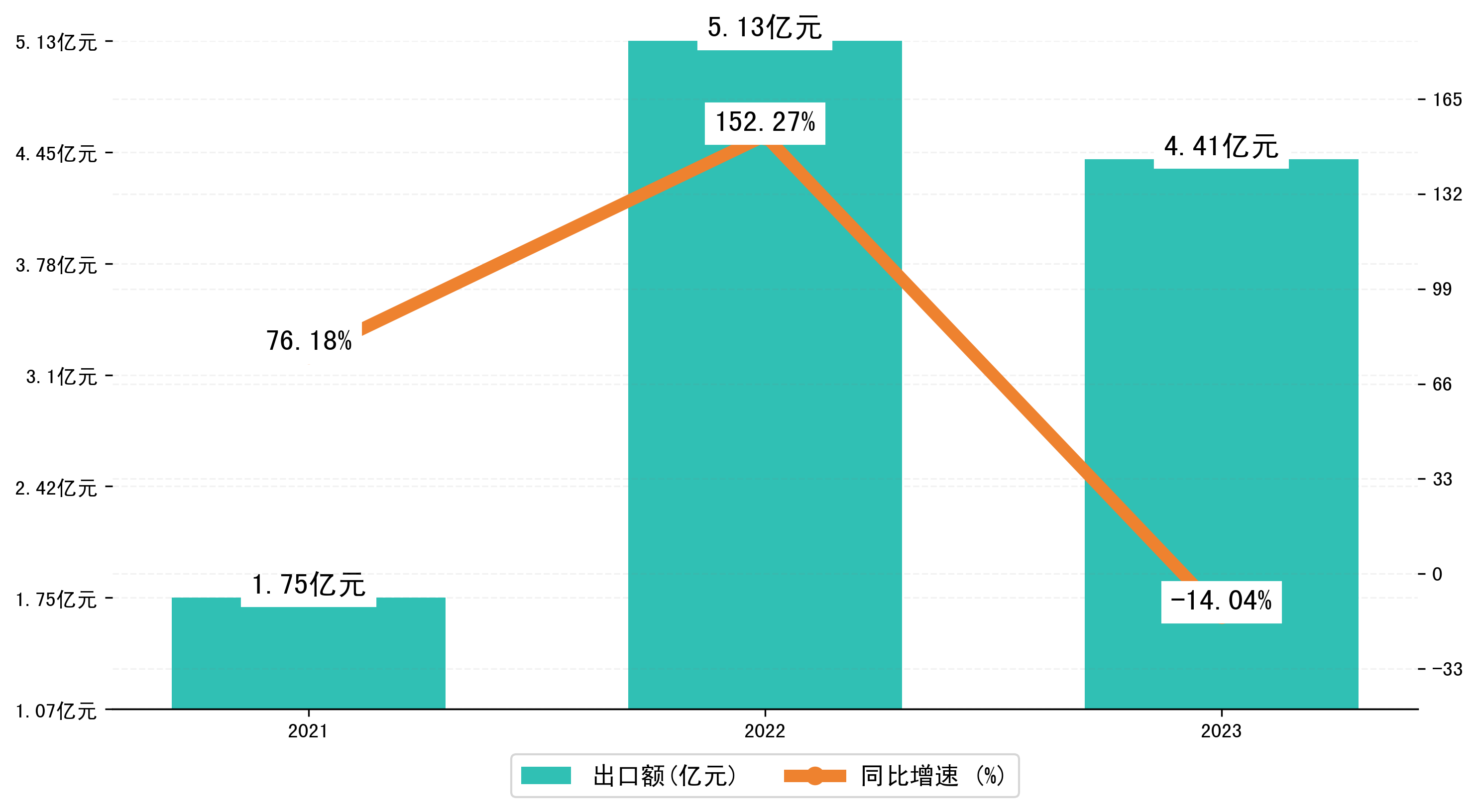 以美元计,2023年1-1月珲春市出口额为6231.3229万美元,相比上年同期减少了1818.2053万美元,同比减少-22.60%。