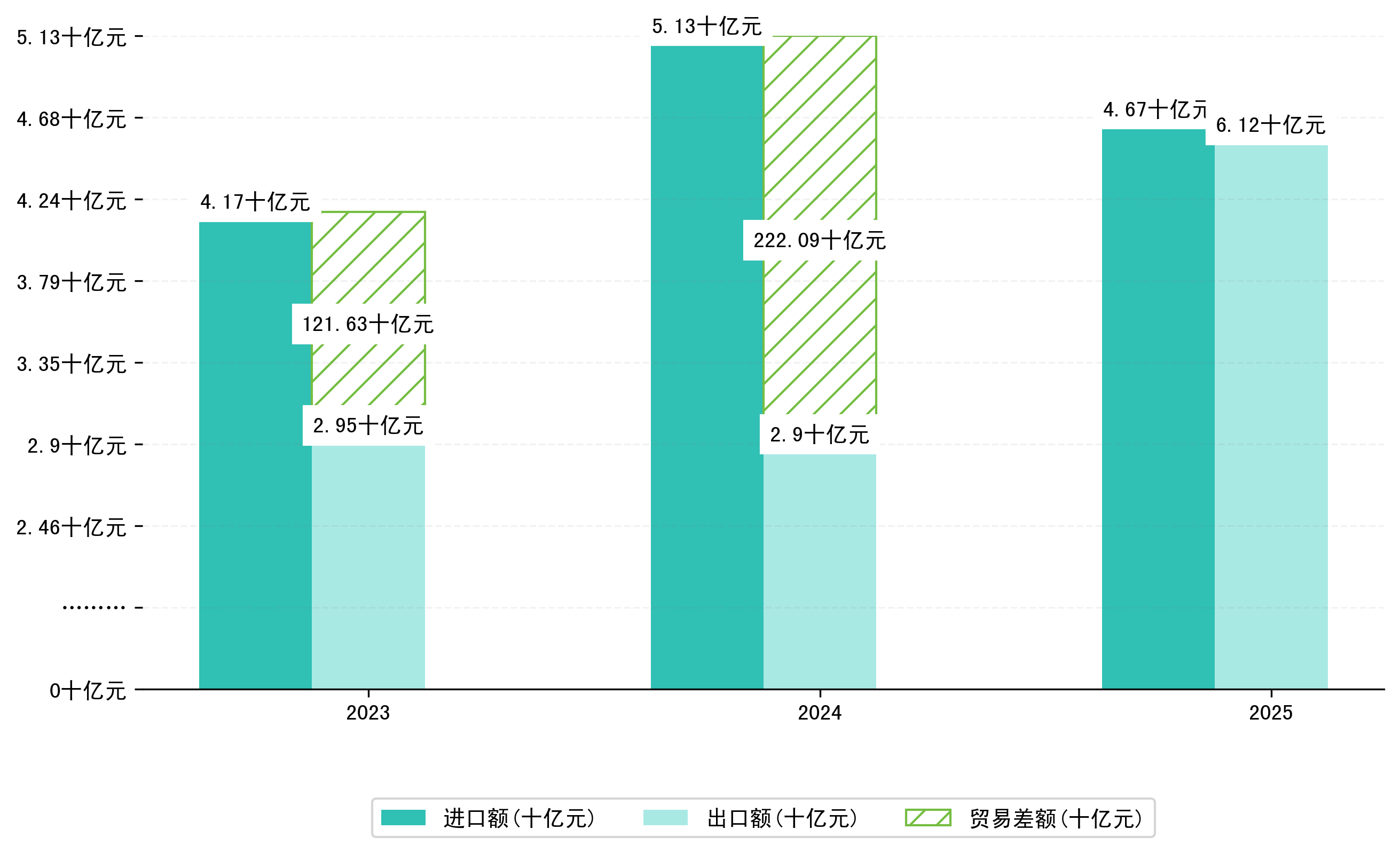 以人民币计,2025年5月珲春市贸易差额为4,7980,6039万元(贸易顺差),相比上月减少了6454,7936万元,即935,2716万美元;相比上年同期增加了6,5867,8196万元,同比增加-368.24%。