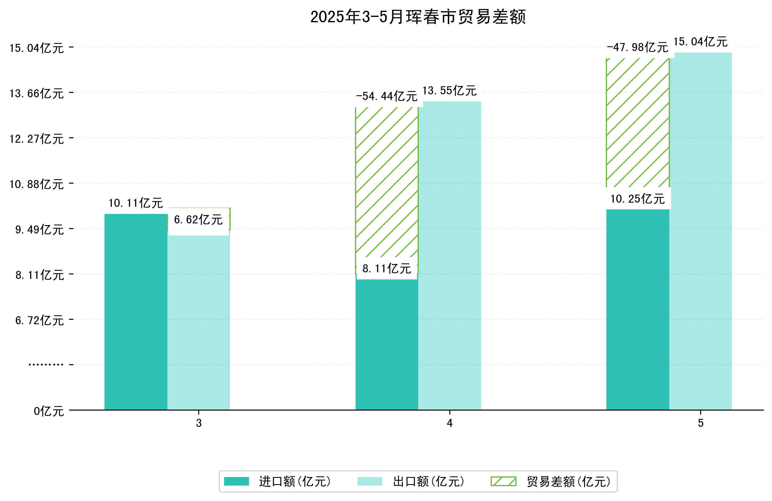 2025年5月珲春市进出口总额及进出口差额统计分析