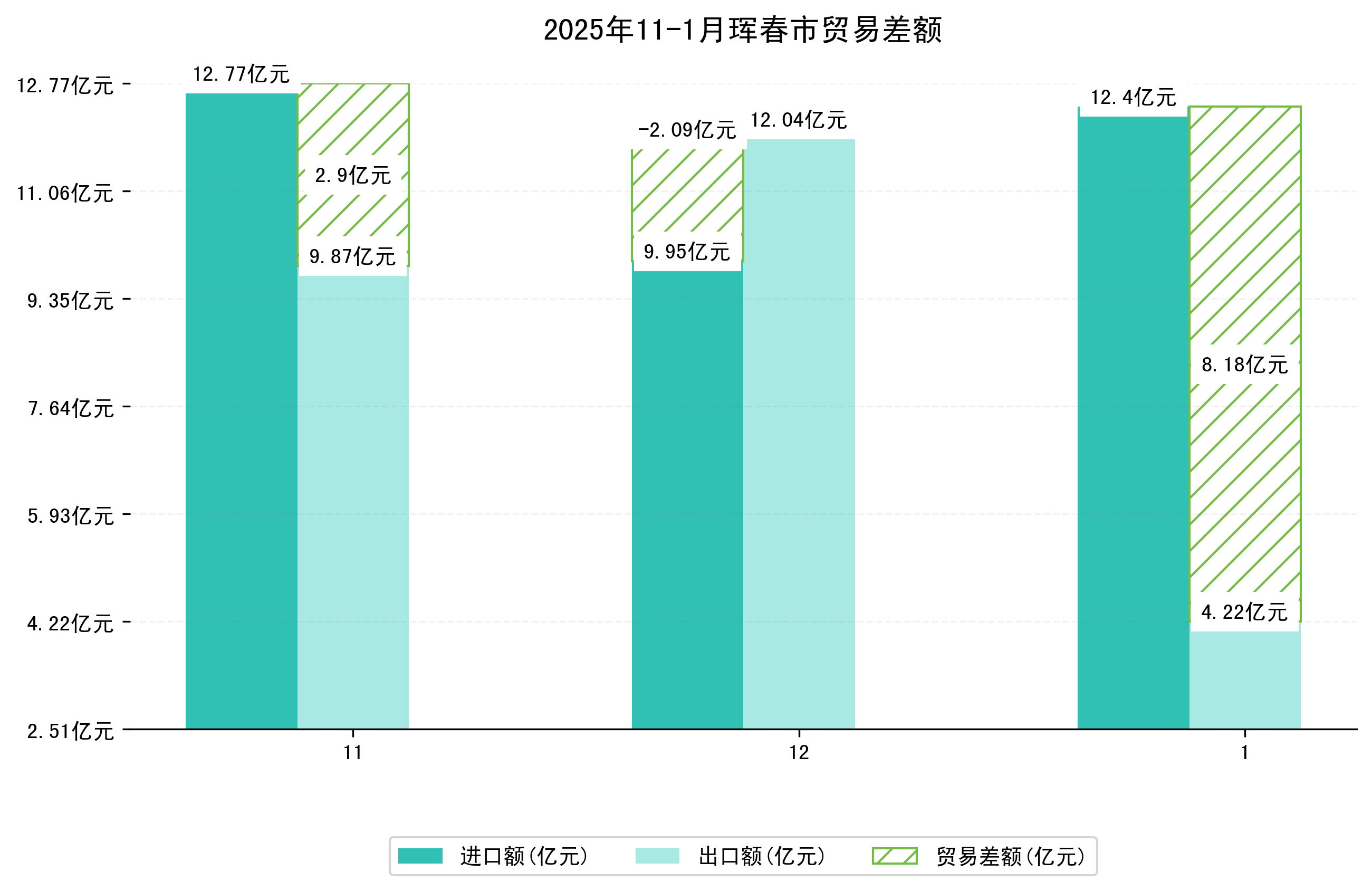 2025年1月珲春市进出口总额及进出口差额统计分析
