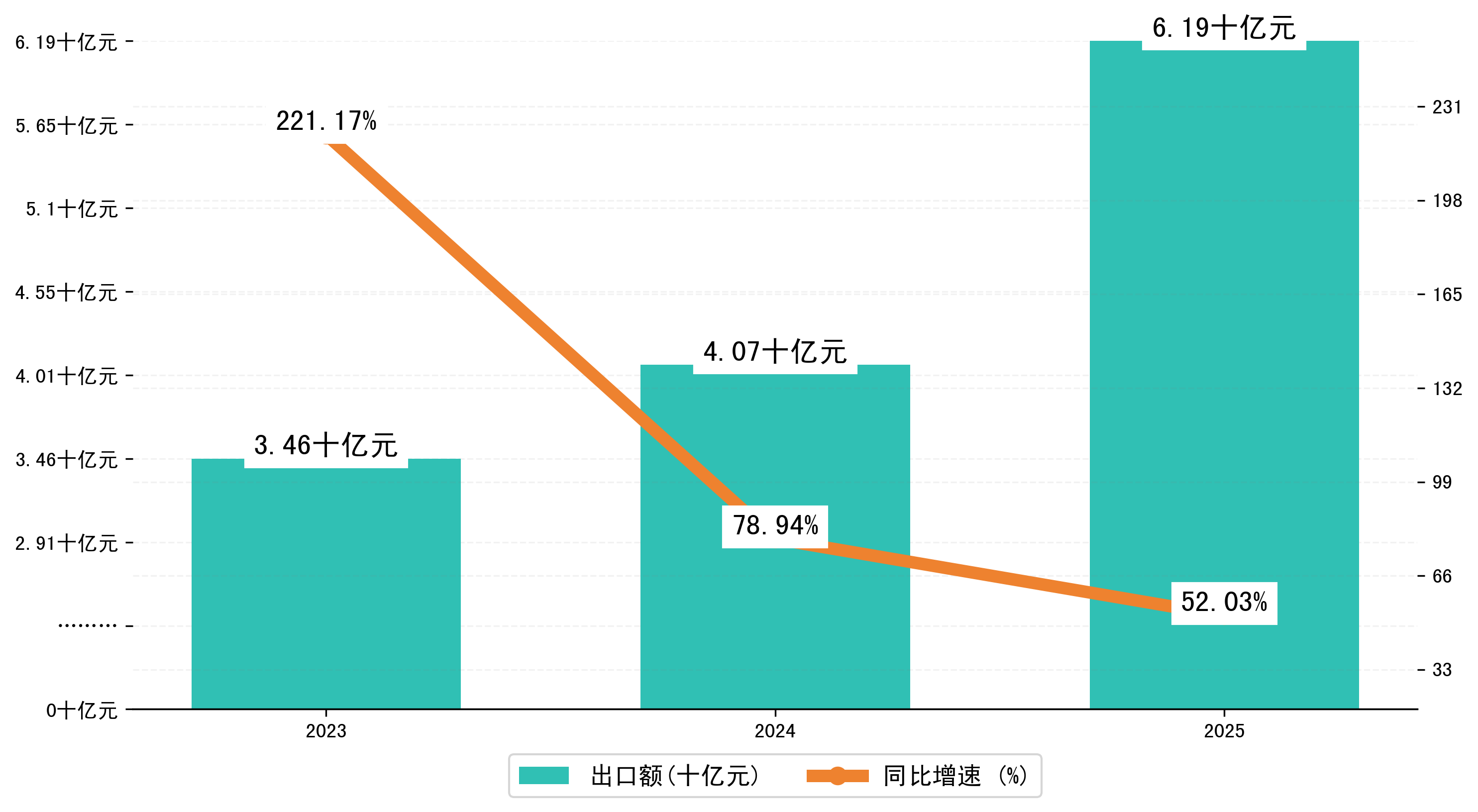 以美元计,2025年1-6月珲春市出口额为8,6180.7011万美元,相比上年同期增加了2,8835.0351万美元,同比增加50.30%。