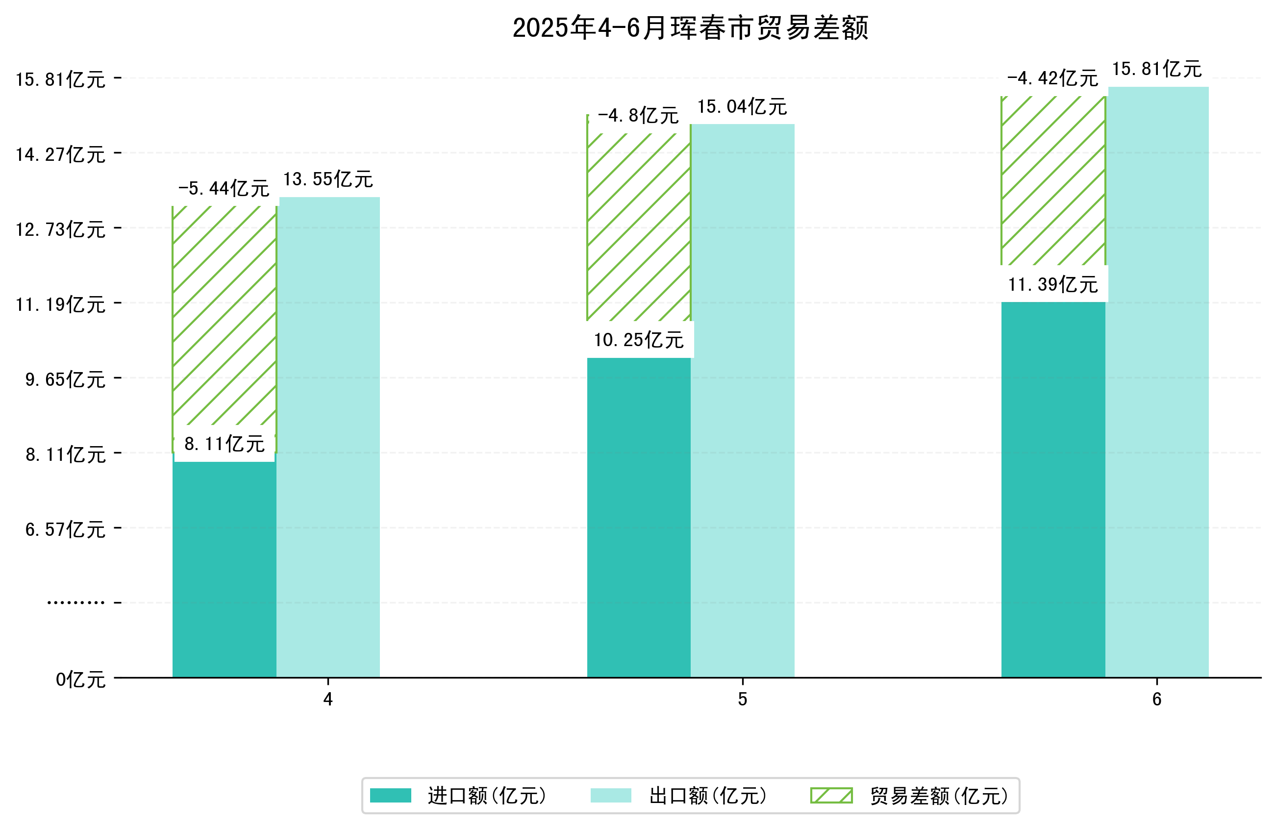2025年6月珲春市进出口总额及进出口差额统计分析