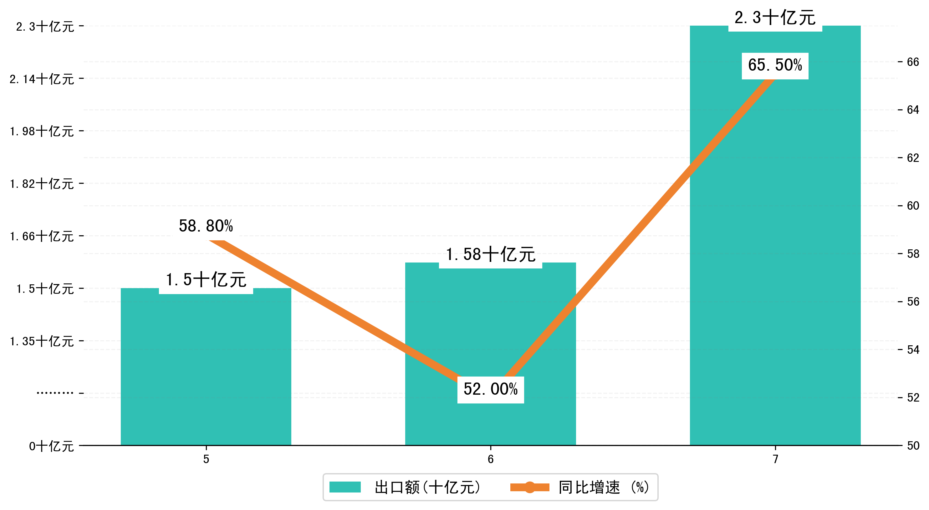 以美元计,2025年1-7月珲春市出口额为11,8210.4222万美元,相比上年同期增加了4,6040.5379万美元,同比增加63.80%。