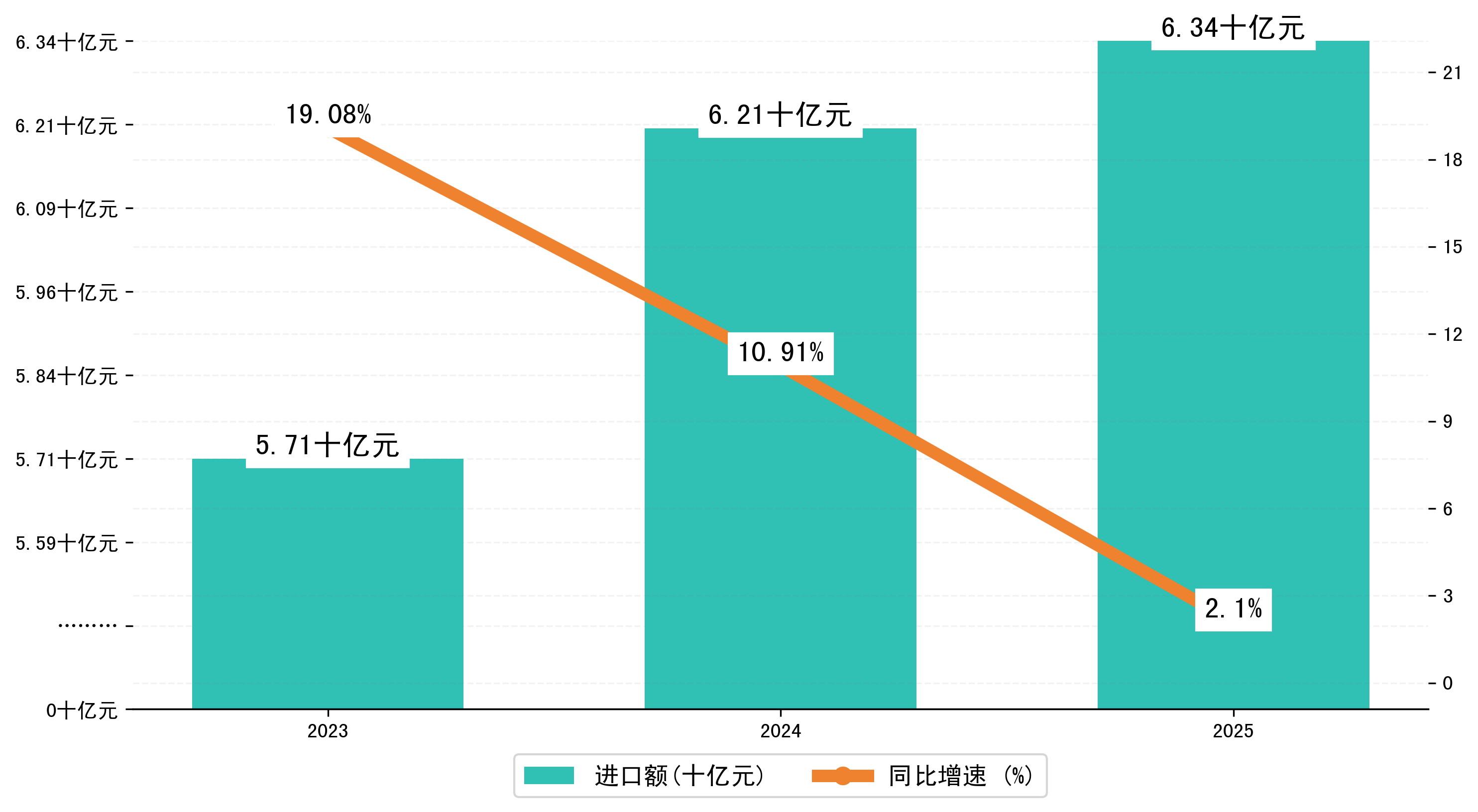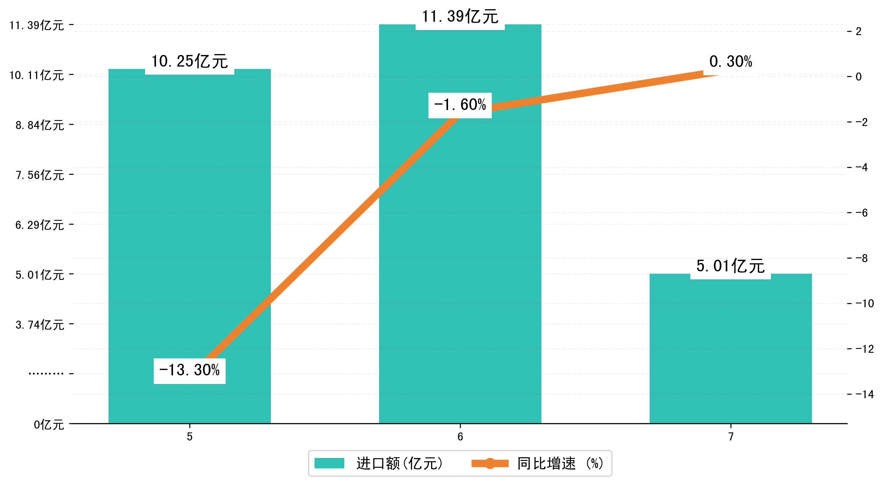 以人民币计,2025年1-7月珲春市进口额为63,3819.1825万元,相比上年同期增加了1,3046.4245万元,同比增加了0.30%。