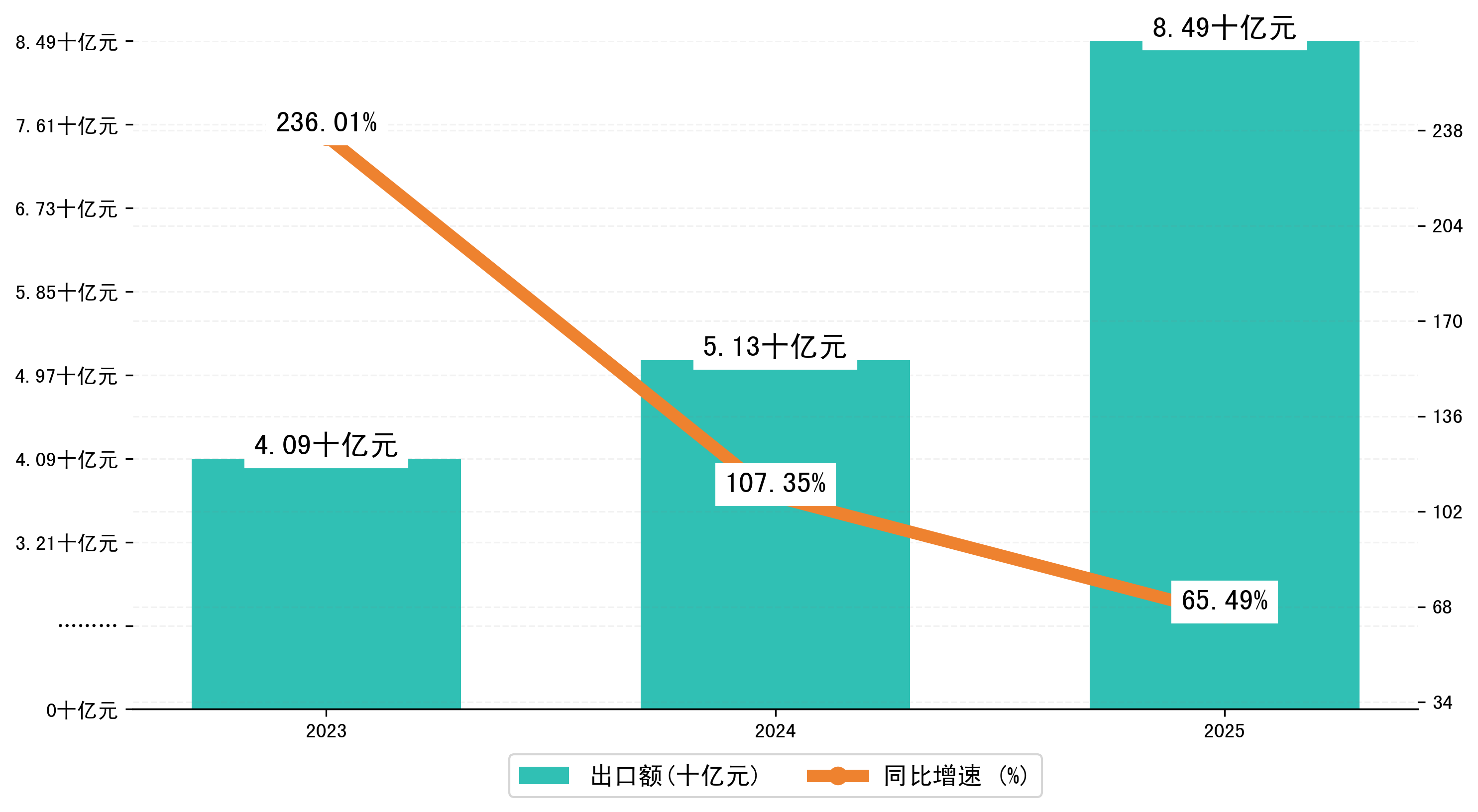 以人民币计,2025年1-7月珲春市出口额为84,8865.0514万元,相比上年同期增加了33,5911.1786万元,同比增加了65.50%。