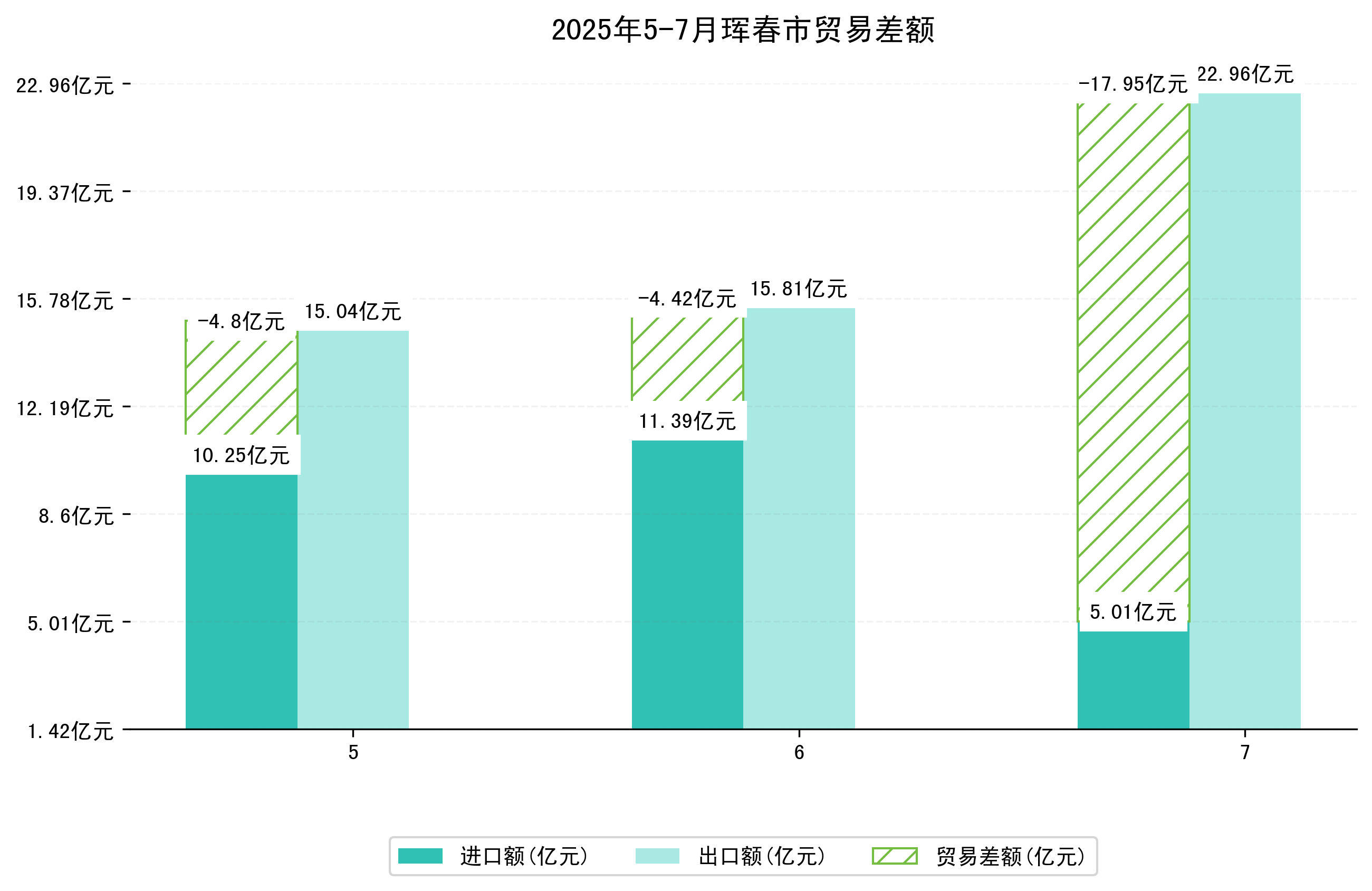 2025年7月珲春市进出口总额及进出口差额统计分析