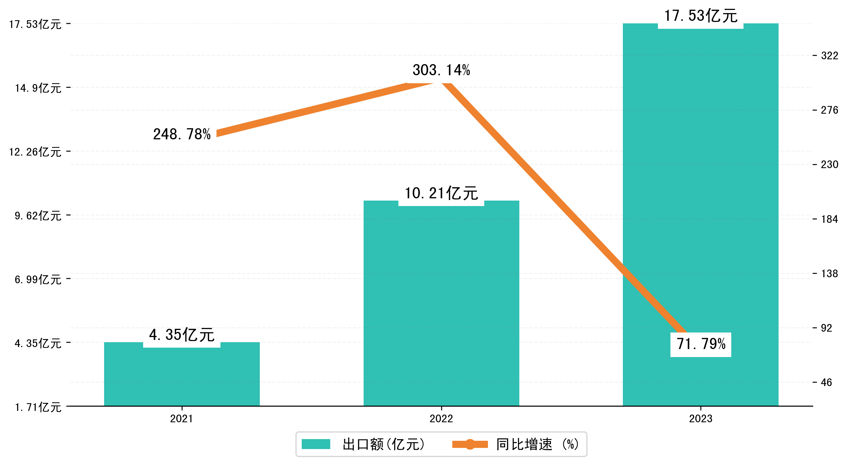 以美元计,2023年1-3月珲春市出口额为2,5326.216万美元,相比上年同期增加了9350.0095万美元,同比增加58.50%。