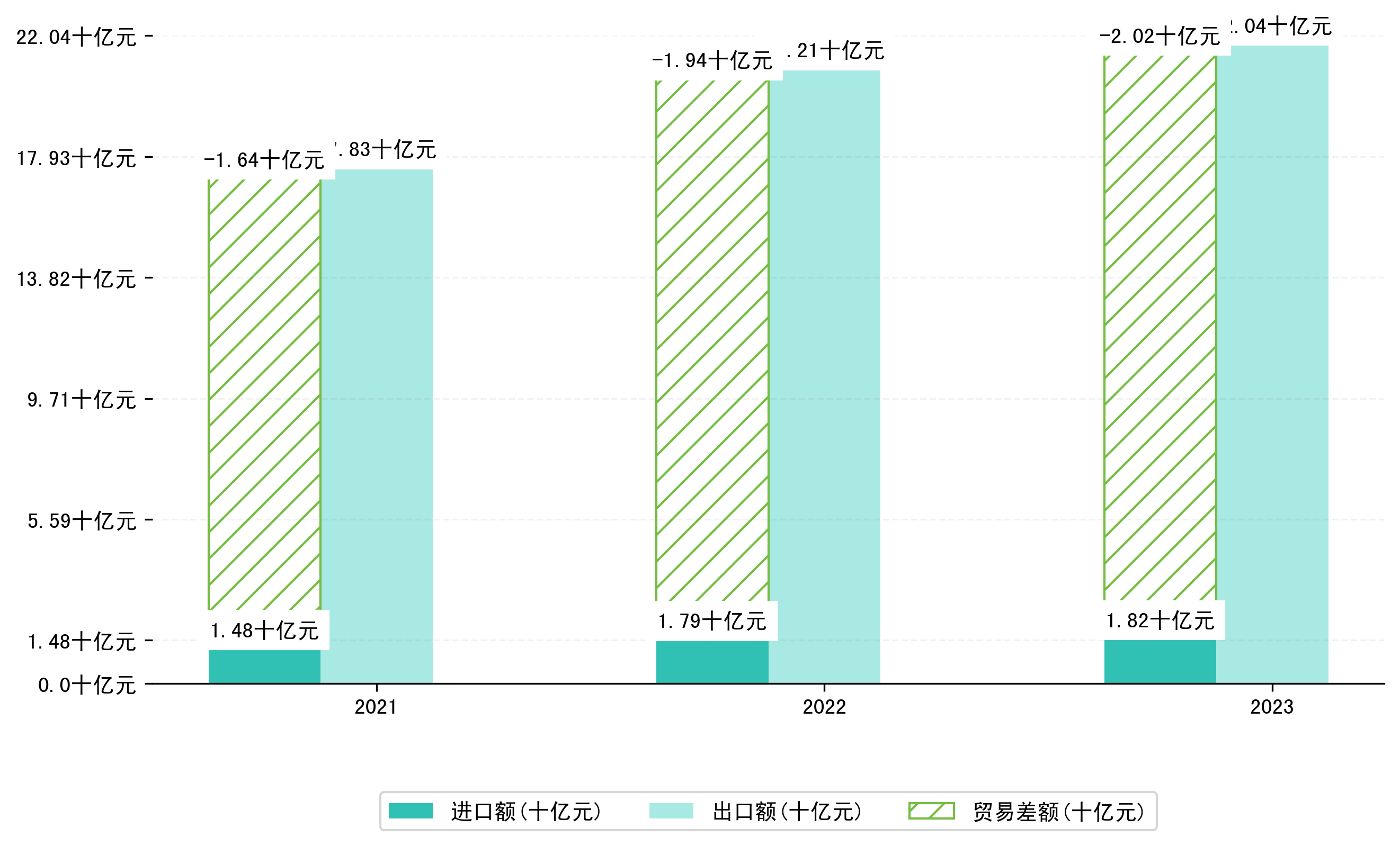 以人民币计,2023年1-2月湖州市贸易差额为202,2740,4812万元(贸易顺差),相比上年同期增加了8,1148,2203万元,同比增加4.18%。